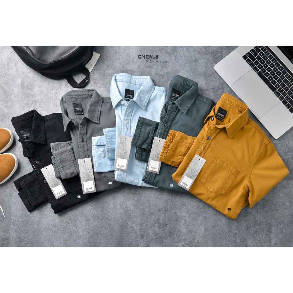 ÁO SƠ MI DENIM NAM DÀI TAY CỔ BẺ, SƠ MI DENIM DÀI TAY CÁ TÍNH - Dài tay