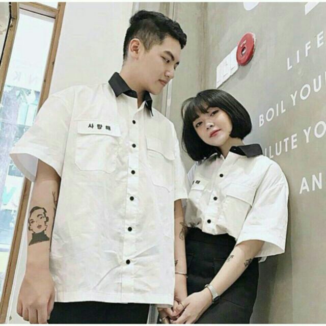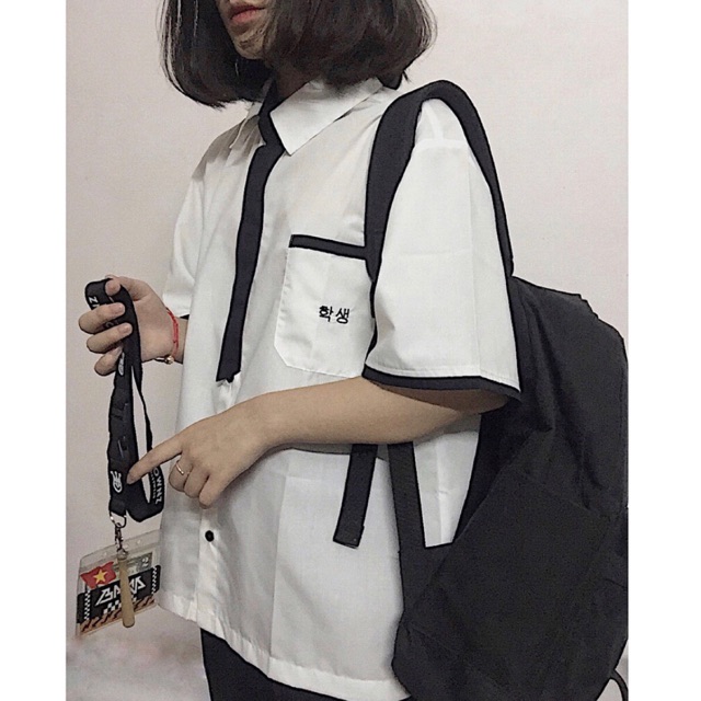Áo sơ mi Hàn Quốc vạt đen siêu hot 2019 - Unisex nam nữ full size dưới 75kg - Dài tay