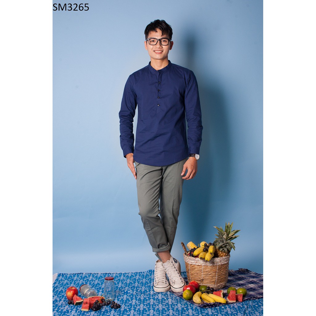 ÁO SƠ MI NAM CỔ TRỤ XANH ĐEN SANG TRỌNG