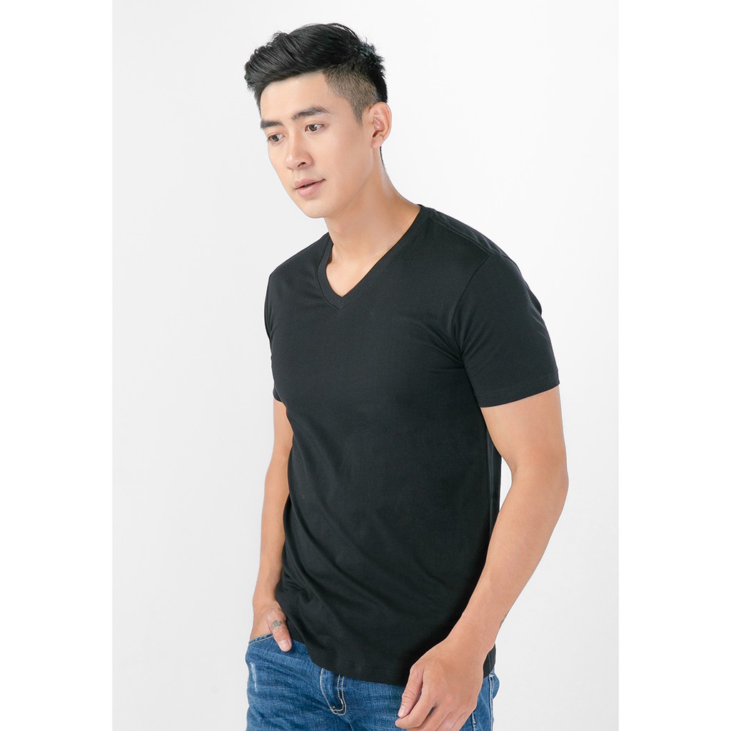 Áo thun nam cổ tim cao cấp thoát nhiệt nhật bản đen - Áo ngắn tay không cổ