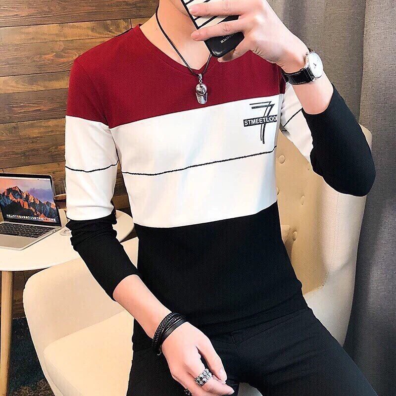 áO Thun Nam Dài Tay CHẤT ĐẸP PHỐI 3 MÀU SỐ 7 NGƯỢC COTTON TEEN GROUP 2 - Áo thun dài tay