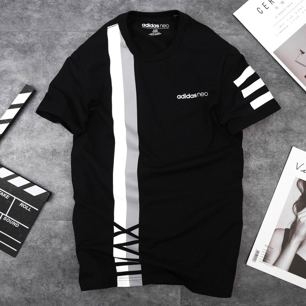Áo thun nam ngắn tay cổ tròn phối sọc hai màu cực cá tính - Áo ngắn tay không cổ