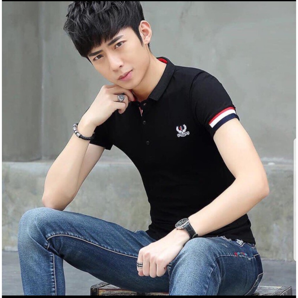 áO Thun Nam Tay Ngắn Cổ Trụ Màu Đen Logo Bông Lúa Cao Cấp Teen Group 2 - Áo ngắn tay có cổ