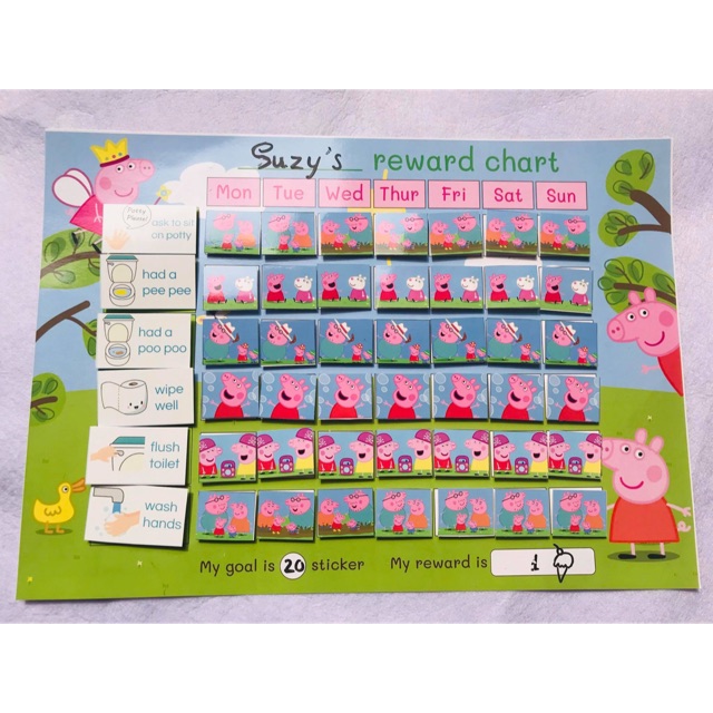️Bảng thành tích khen thưởng - Reward chart cho bé Đầu năm bố mẹ hãy cùng con hình thành những thói quen tốt vs bảng khen thưởng. Tặng bé một sticker khi bé hoàn thành 1 công việc mỗi ngày. Cùng bé đặt mục tiêu mỗi tuần, khi đạt được 30,40 stickers, bé sẽ được ăn kem, xem ipad 20'.... 1 bộ bảng khen thưởng bao gồm: ?Bảng và bộ 42 sticker cho 7 ngày trong tuần, sticker bóc dán nên bé chơi lâu dài đc ➥ 12 Thẻ hoạt động - 6 thẻ hoạt động buổi sáng: ăn sáng, thay quần áo, lấy cặp... - 6 thẻ hoạt động buổi tối: tắm, dọn đồ chơi, đánh răng, đi ngủ đúng giờ... Ngoài ra có bộ thẻ Potty training ( Khuyến khích bé tự đi WC) không nằm trong bộ, các mẹ có bé trong độ tuổi đó có thể mua thêm vs giá 10k. ➥ Túi vải để bé đựng và giữ gìn sticker Giá nhỏ nhẹ và yêu thương: 120k ?♀️Bảng thành tích được làm từ giấy in flashcard ép plastic bền đẹp, phần dính được đính tỉ mỉ bằng nhám dính ko dễ bong tróc.