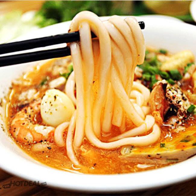 Cách sơ chế: Luộc bánh canh cho chín sợi rồi vớt ra xả với nước lạnh. Nấu xong nước dùng rồi thả bánh vào đun sôi