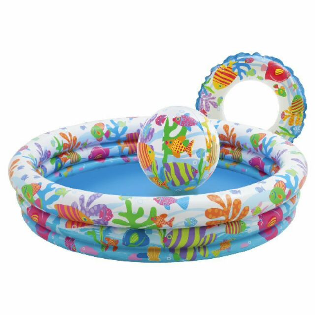 ️Tên sản phẩm: Bể bơi 3 tầng 3 chi tiết 59469 – Chất liệu: PVC – Kích thước: 132x28cm bể bơi; bóng và phao bơi đường kính 51cm – Trọng lượng: 800g – Lưu ý: Khi cho bé chơi với nước, bố mẹ nên hòa thêm chút muối vào nước để khử trùng tránh các bênh mắt mũi cho bé.