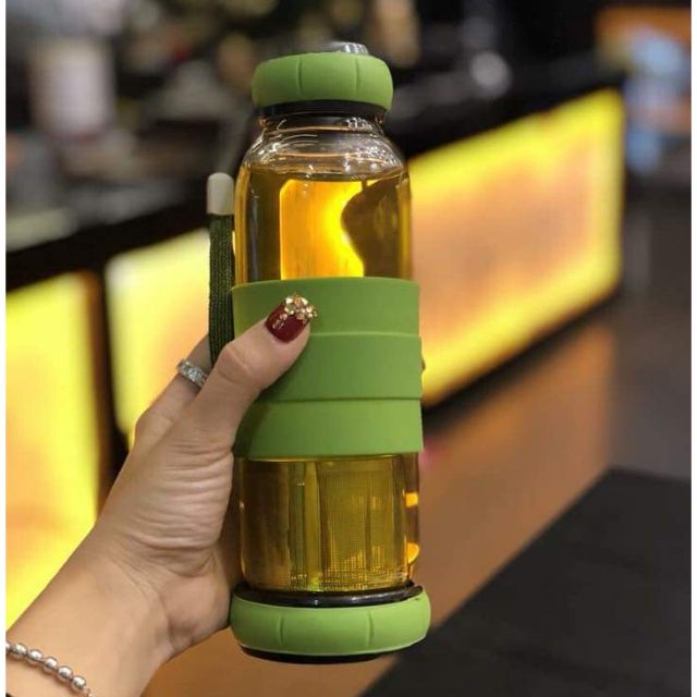 ️Bình thủy tinh pha trà có lọc trà e về số lượng lớn lắm ấy. Hàng hót hòn hoạt về bao nhiêu cũng hết luôn – Bình bằng thủy tinh Borosilicate chiết suất cao, độ trong gần tương đương pha lê, có khả năng chịu được nhiệt độ từ -10 đến 120 độ C – Kiểu dáng thời trang, sang trọng, hiện đại, phù hợp mang đến phòng tập gym, văn phòng, picnic, trên ô tô hay đi dã ngoại… – Bình thủy tinh pha trà lọc trà đựng nước 450ml với lớp thủy tinh dày, độ bền cao. – Thiết kế bình còn có dây treo/xách tiện lợi và bao da chống trơn tuột, chống nóng khi cầm. – Phần đáy dưới có lưới lọc inox không rỉ, dùng để lọc xác trà, thảo dược. Thông tin sản phẩm : – Vật liệu: Thủy tinh 2 lớp, nhựa ABS, inox cao cấp – Kích thước: D6.5xH22 cm – Dung tích: 500ml – Trọng lượng: 425 g ĐL, MT, ah
