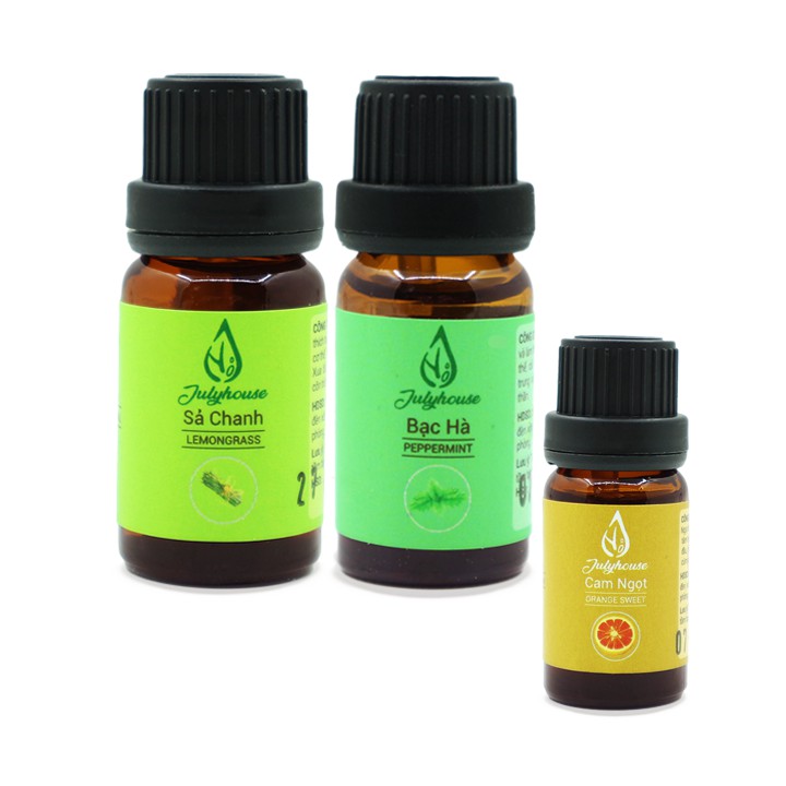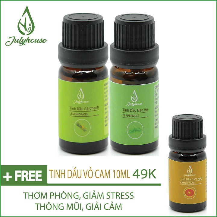 ️BỘ TINH DẦU GIẢI TỎA CĂNG THẲNG, TÁI TẠO NĂNG LƯỢNG JULYHOUSE. Mô tả: Tinh dầu Sả Chanh 10ml. Xuất xứ: Việt Nam. Tinh dầu Bạc Hà 10ml. Xuất xứ: Việt Nam. Quà tặng: Tinh dầu Cam Ngọt 10ml. Xuất xứ: Anh Công dụng: Bộ tinh dầu được thiết kế giúp bạn tận hưởng không gian spa: nhẹ nhàng, thư giãn và giúp tái tạo lại nguồn năng năng lượng tươi mới. Với mùi hương nhẹ dịu từ Sả Chanh giúp khử mùi hiệu quả , đem lại không gian sinh họat và làm việc thoáng mát. Kết hợp với Bạc Hà the mát cùng hương Cam Ngọt ngào giúp nâng cao tinh thần, giải tỏa cảm giác căng thẳng, cảm xúc tiêu cực. Tinh dầu Sả Chanh Hương thơm nhẹ nhàng, dễ chịu cùng khả năng khử mùi khử mùi tối ưu, đem lại không gian sống và làm việc thoải mái. Xua tan căng thẳng. lo âu, làm mới tinh thần. Xua đuổi muỗi và côn trùng hiệu quả. Rất phù hợp khi phối với các loại tinh dầu Bạc Hà, Cam, Chanh Sần và Oải Hương. Tinh dầu Bạc Hà: Thành phần methol và 1,8 cineole có trong tinh dầu Bạc Hà giúp khắc phục nhanh chóng các chứng nghet mũi, đau đầu, say xe. Khử mùi hiệu quả, hương thơm the mát có tác động tích cực đến tinh thần, làm phấn chấn tinh thần. Kết hợp tinh dầu Bạc Hà và Oải Hương, massage nhẹ nhàng vào các khớp giúp giảm cơn nhức, đồng thời giữ ấm và khô. Tinh dầu Cam Ngọt: Mùi hương phổ biến, phù hợp với hầu hết mọi đối tượng sử dụng. Hương thơm Cam ngọt ngào, tươi mát hình thành nên nguồn năng lượng tích cực, giúp cơ thể phấn chấn. Tinh dầu Cam Ngọt có tác động rất tốt đến đường tiêu hóa, giúp ngon miệng và chữa chứng đầy hơi, khó tiêu. Kết hợp rất tốt với các loại tinh dầu Quế, Oải Hương, Gừng, Ngọc Lan Tây. Hướng dẫn sử dụng: Xông phòng: 3 giọt tinh dầu Sả Chanh 2 giọt tinh dầu Bạc Hà. 1 giọt tinh dầu Cam Ngọt Cho vào đèn đốt hoặc thiết bị xông tinh dầu, chứa sẵn nước.Sử dụng Bộ khuếch tán để giúp khếch tán nhanh chóng và tiện lợi hỗn hợp tinh dầu phối. Lưu ý: Để xa tầm tay trẻ em. Không sử dụng tinh dầu lên các vết thương hở. Không uống trực tiếp tinh dầu Trẻ dưới 6 tháng tuổi, người mắc bệnh kinh niên, phụ nữ có thai và cho con bú nên tham khảo ý kiến bác sĩ trước khi sử dụng. Không để nước và các chất khác lẫn vào làm hỏng tinh dầu. Đọc kỹ hướng dẫn trước khi khi sử dụng. Bảo quản: Bảo quản nơi khô ráo, thoáng khí. Tránh để tinh dầu gần nguồn nhiệt và tiếp xúc trực với ánh sáng. Đậy nắp kỹ khi không sử dụng. #tinhdauxongphong #tinhdaunguyenchat #tinhdaubacha #tinhdausachanh #tinhdaucam #lemongrass #tinhdauduoimuoi #tinhdau #julyhouse #tinhdauthomphong