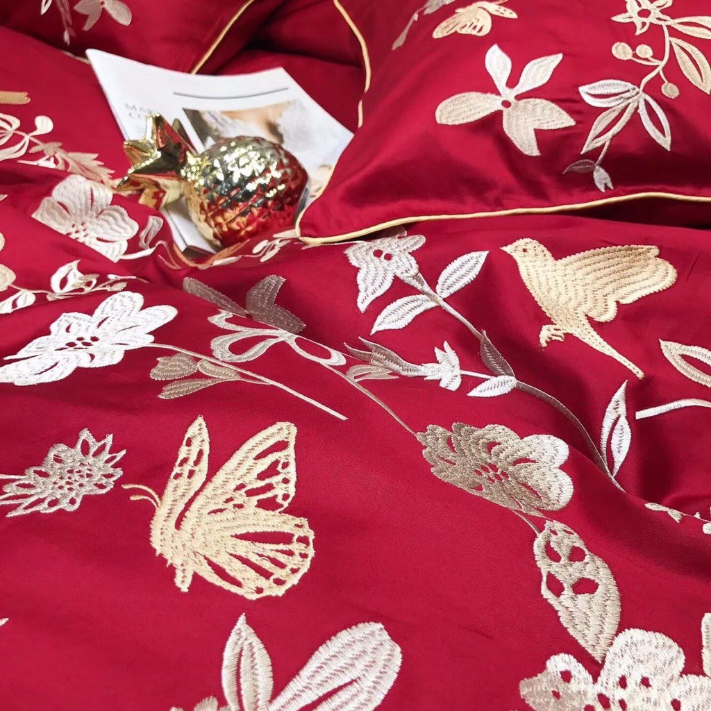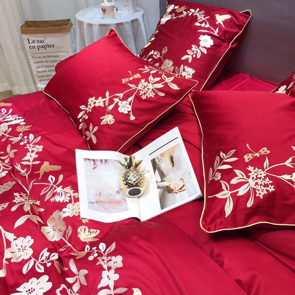 ️Bộ chăn ga gối cao cấp chất liệu cotton lụa cực sang trọng, là chất liệu tốt nhất trong các dòng chăn ga gối cưới, họa tiết thêu tinh tế làm nổi bật căn phòng của bạn. Màu sắc đa dạng nhiều sự lựa chọn dễ dàng phối hợp với nội thất phòng ngủ. Các bạn lưu ý là set vỏ không kèm ruột, là dòng chăn ga hiện đại, không trần bông sẵn như dòng chăn ga cưới Việt Nam sản xuất. Sản phẩm có thể đặt trần bông thêm ga và chăn (+150k mỗi món). Chất liệu vải cotton pha lụa, mật độ sợi dệt dày nên bề mặt bóng nhẹ, không xù, vải có độ dày vừa phải, mướt tay, trơn mịn nhưng vẫn đảm bảo độ thoáng, thấm hút mồ hôi tốt. Là sản phẩm dòng cao cấp, bộ chăn ga gối sang trọng tinh tế phù hợp trang trí phòng cưới hoặc làm quà tặng tân gia, quà tặng cưới hỏi. Bộ chăn ga gối cao cấp có tông màu đỏ nổi bật rất phù hợp làm ga cưới. Sản phẩm y hình, nguyên bộ đóng hộp gọn gàng rồi nên shop không bỏ ra chụp lại nữa. Nếu cần ảnh cận mặt vải các bạn nhắn tin shop gửi nhé, các bộ cao cấp chất vải đều tương tự nhau chênh lệch chút ít không đáng kể. Bộ chăn ga gối cao cấp bao gồm 6 món: - 1 ga phủ/ chun (shop mặc định làm ga phủ nên bạn nào muốn làm ga chun vui lòng inbox shop nhé) - 1 vỏ chăn mỏng lồng được ruột 2m x 2m2 - 2 vỏ gối 50cm x 70cm - 2 vỏ gối tựa kích thước 50cm x 50cm - nếu có vỏ gối ôm shop sẽ tự tặng thêm các bạn nhé #bochangagoi #changagoi #bochangagoicaocap #caocap #bochangacaocao #changacaocap #changacuoi #bogagoicaocap