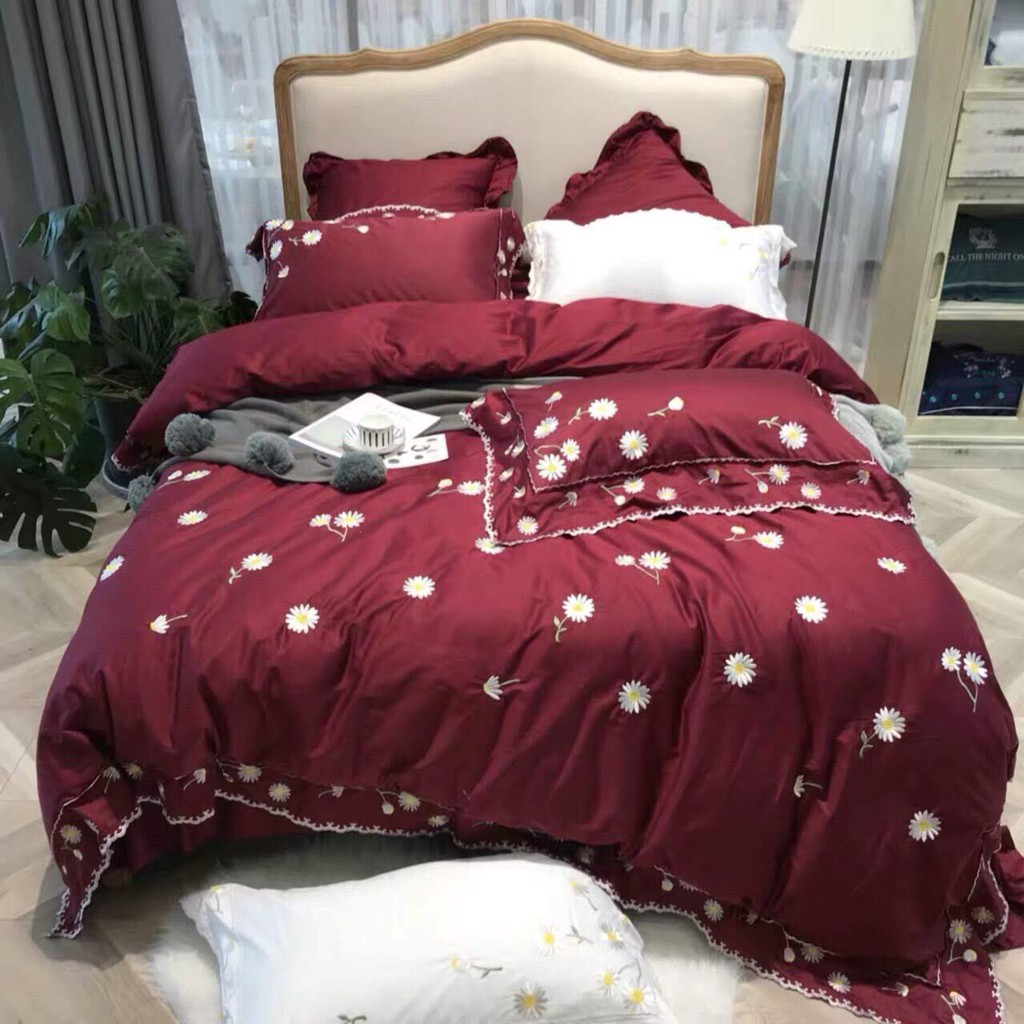 ️Bộ này không sản xuất màu xanh nhạt nữa chỉ có xanh tím than và đỏ các bạn nhé. Bộ chăn ga gối cao cấp chất liệu cotton lụa cực sang trọng, là chất liệu tốt nhất trong các dòng chăn ga gối cưới, họa tiết thêu tinh tế làm nổi bật căn phòng của bạn. Màu sắc đa dạng nhiều sự lựa chọn dễ dàng phối hợp với nội thất phòng ngủ. Các bạn lưu ý là set vỏ không kèm ruột, là dòng chăn ga hiện đại, không trần bông sẵn như dòng chăn ga cưới Việt Nam sản xuất. Sản phẩm có thể đặt trần bông thêm ga và chăn (+150k mỗi món). Chất liệu vải cotton pha lụa, mật độ sợi dệt dày nên bề mặt bóng nhẹ, không xù, vải có độ dày vừa phải, mướt tay, trơn mịn nhưng vẫn đảm bảo độ thoáng, thấm hút mồ hôi tốt. Là sản phẩm dòng cao cấp, bộ chăn ga gối sang trọng tinh tế phù hợp trang trí phòng cưới hoặc làm quà tặng tân gia, quà tặng cưới hỏi. Bộ chăn ga gối cao cấp có tông màu nổi bật rất phù hợp làm ga cưới. Sản phẩm y hình, nguyên bộ đóng hộp gọn gàng rồi nên shop không bỏ ra chụp lại nữa. Nếu cần ảnh cận mặt vải các bạn nhắn tin shop gửi nhé, các bộ cao cấp chất vải đều tương tự nhau chênh lệch chút ít không đáng kể. Bộ chăn ga gối cao cấp bao gồm 4 món: - 1 ga phủ/ chun (shop mặc định làm ga phủ nên bạn nào muốn làm ga chun vui lòng inbox shop nhé) - 1 vỏ chăn mỏng lồng được ruột 2m x 2m2 - 2 vỏ gối 50cm x 70cm - nếu có vỏ gối ôm shop sẽ tự tặng thêm các bạn nhé #bochangagoi #changagoi #bochangagoicaocap #caocap #bochangacaocao #changacaocap #changacuoi #bogagoicaocap