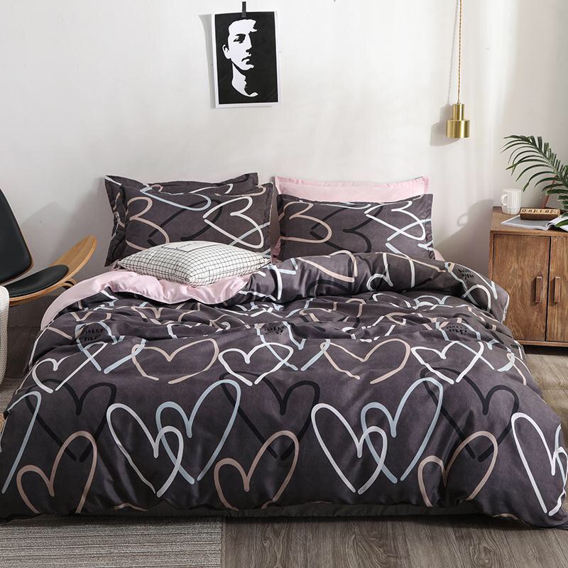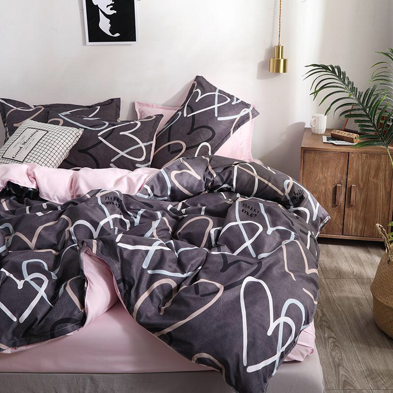 Bộ Chăn Ga Gối Cotton Poly Nhập Khẩu-Tim Trắng Đen