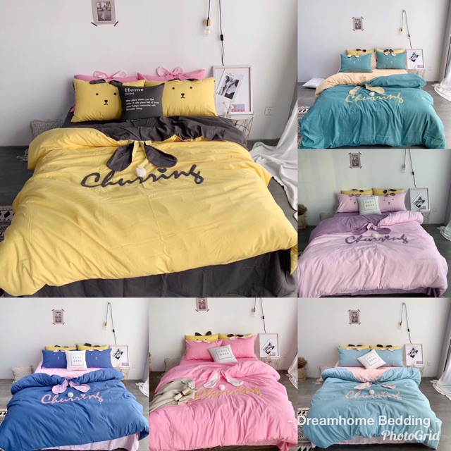 ️Bộ chăn ga gối chất liệu cotton hoạt tính. Đây là dạng cotton mới, cotton 100% mật độ sợi dệt thấp hơn nên sợi vải sẽ không đẹp và bền bằng cotton organic, denim, 3D... bù lại vẫn thấm hút tốt, giặt máy thoải mái, giá tốt hơn. Có trang trí tai thỏ ở gối và chăn như hình, chữ trang trí nổi cực xinh Set 4 món: - 1 ga phủ freesize (ga chun nhắn tin shop sửa ạ) - 2 vỏ gối 50x70cm - 1 vỏ chăn 2mx2m3 #cotton #bochanga #changagoi