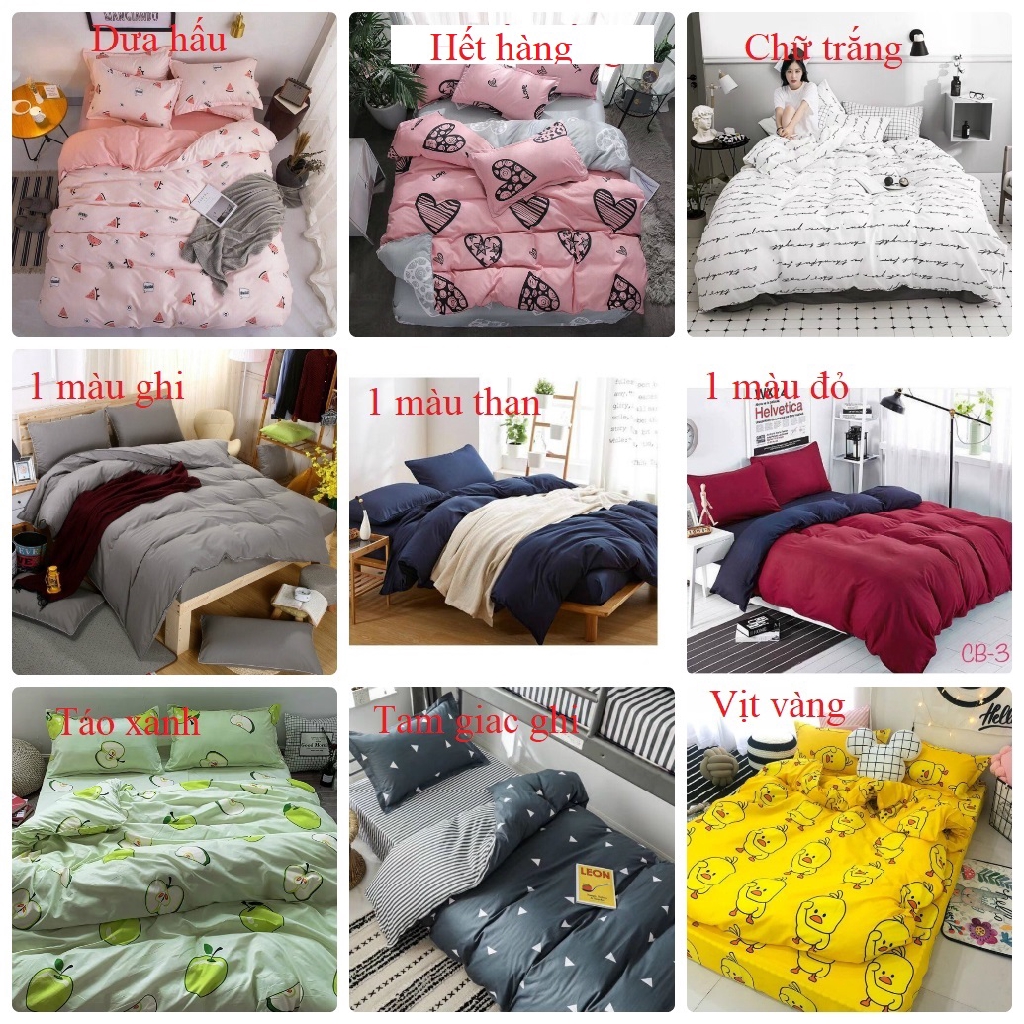 ️CHÚ Ý: *** Khách không chát hoặc ghi chú mẫu bên mình sẽ giao mẫu ảnh đại diện nhé *** Ga bo chun đệm 10cm, nếu đệm dày hơn khách nhớ chát hoặc ghi chú nha Set gồm - 1 vỏ chăn lồng được ruột 2mx2.2m - 02 vỏ gối nằm 50x70cm - 01 ga bo phủ Freesize 1m6 hoặc 1m8, kích thước 1m2 và 2m2 bo chun ?.ko có vỏ gối ôm . + Gam màu tươi sáng,phối màu tinh tế. + Không bị co rút khi giặt. + Họa tiết hiện đại, rỏ ràng, sống động như thật, đẹp mê ly. + Chất vải thoáng mát, không ra màu, không xù lông, nằm mát, giặt nhanh khô, bền đẹp với thời gian... Cam Kết Sản Phẩm Như Hình..
