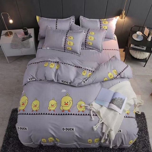 ️bộ 4 món gồm 1 vỏ chăn trơn có khóa kéo để lồng ruột một ga chun bo theo kích cỡ yêu cầu từ mét 8 đổ xuống 2 vỏ gối nằm kích thước 50 x 70 cm