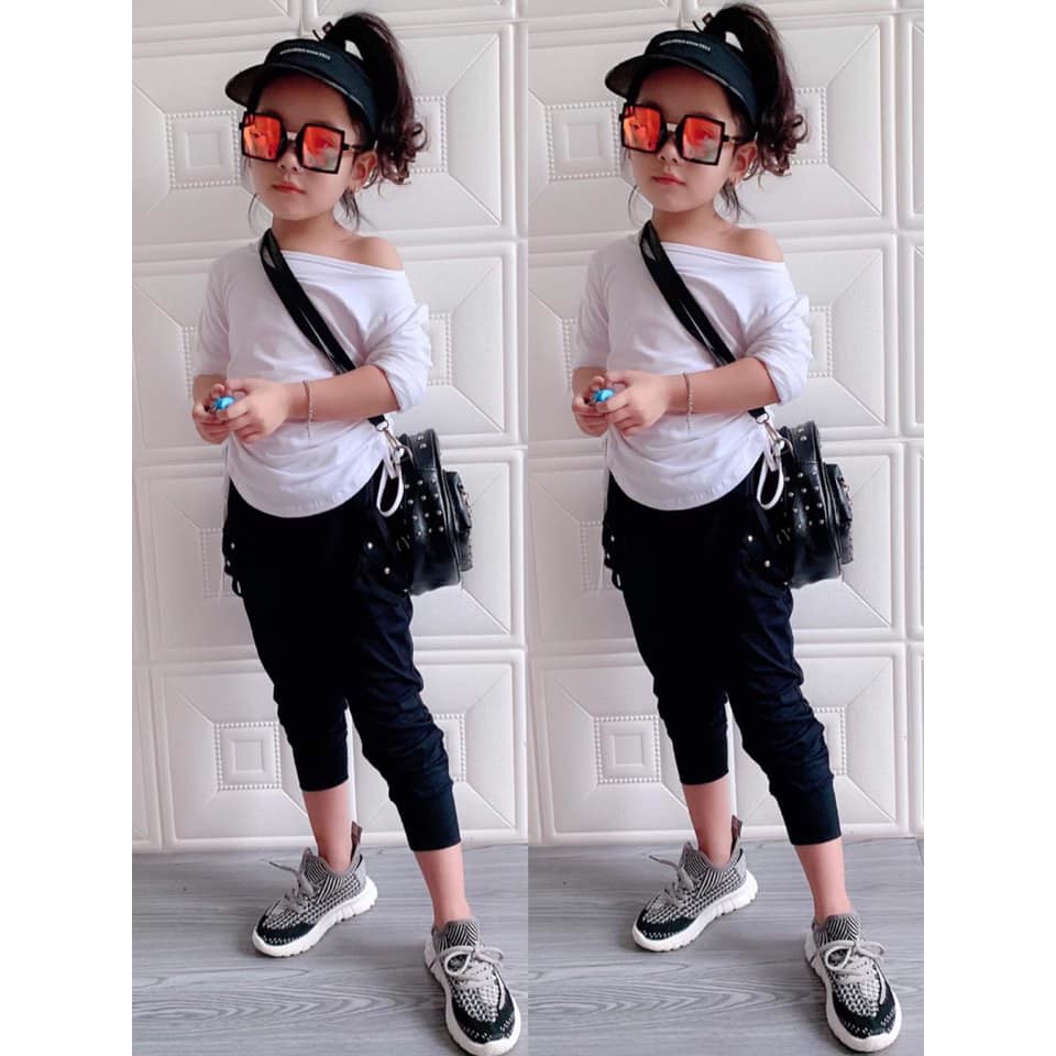 bộ cotton dây rút quần bom cực phong cách cho bé trai, bé gái