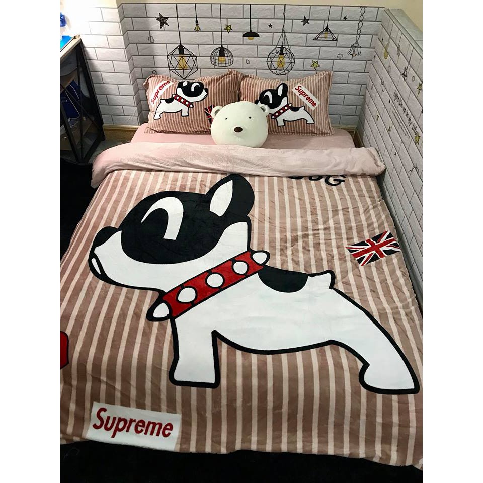 Bộ Drap Giường Vải Nhung Nỉ Bull Dog M6*2M-M8*2M((1 chăn phao, 1 ga, 2 vỏ gối đầu, 1 vỏ gối ôm)