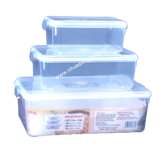 ️Quy cách: Bộ 3 hộp - Chất liệu: Nhựa PP 100% nguyên chất - Tính năng: + Tuổi thọ sản phẩm cao + Hộp thiết kế xếp chồng 3 hộp với nhau + Hộp có thể đựng nhiều thứ như : Cơm, canh, thức ăn + Hộp không gây mùi nhựa lên thức ăn + Có chốt khóa an toàn, tay cầm chắc chắn + Có nắp đậy giúp ngăn bụi + Khó phai màu sản phẩm + Dễ lau rửa sau sử dụng
