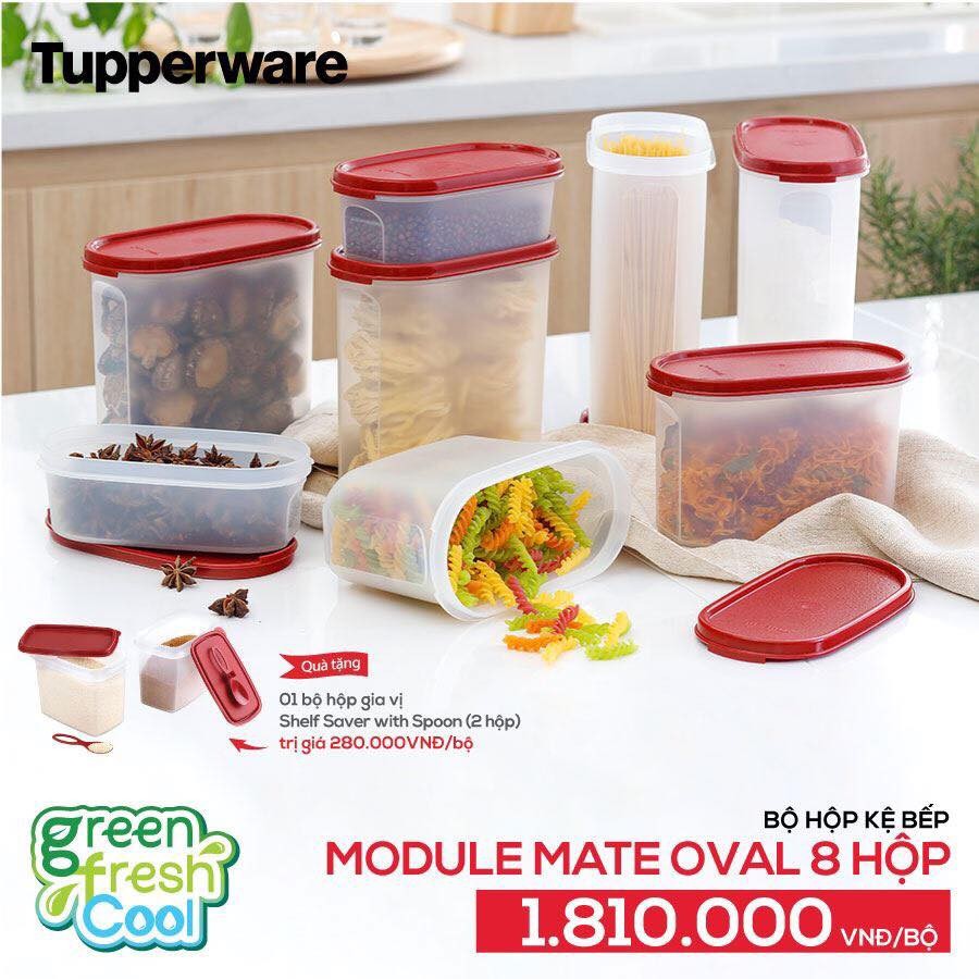 Bộ hộp kệ bếp Modular Mate Oval (8 hộp - 4 size) tặng 2 hộp gia vị