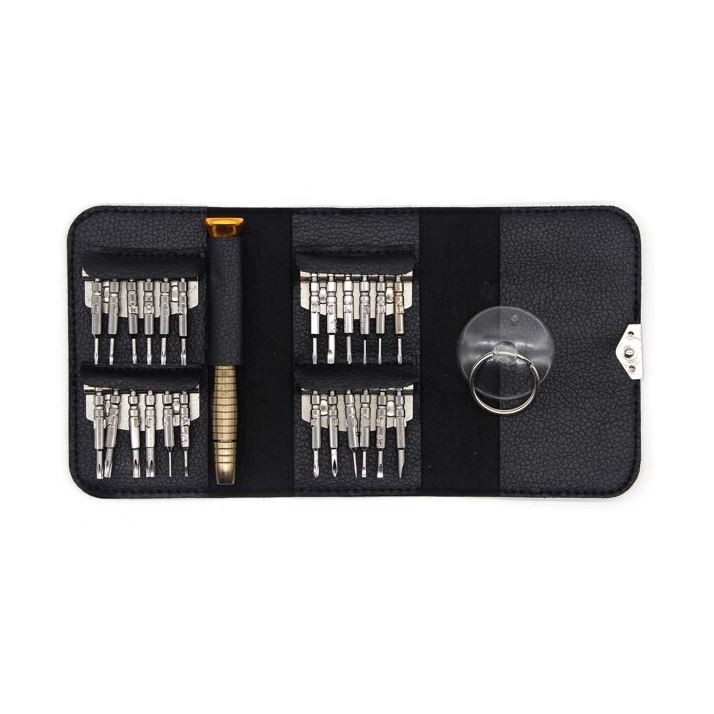 ️Bao gồm 1 đầu mẹ và 24 đầu vít đầy đủ các dạng đầu như dẹt, 2 lỗ, tam giác, lục giác, các loại đầu từ 3 đến 6 cạnh… _ Đặc biệt bao đựng bằng da nhỏ gọn, tiện lợi và lịch sự. _ Độ cứng cao và bền, đầu không bị toè sau nhiều lần sử dụng. _ Tháo được hầu hết các loại điện thoại, máy tính bảng, laptop, PC, camera, watch. _ Nhỏ gọn, thẩm mỹ, mang đi dễ dàng. _ Đủ các cỡ từ lớn đến nhỏ nên rất dễ dàng cho bạn trong việc sửa chữa đồ đạc. Với nhiều kiểu dáng và kích cỡ như dẹt, tam giác, lục giác, hay các đầu từ 3 đến 6 cạnh phù hợp với mọi loại ốc vít để bạn thoải mái sử dụng.