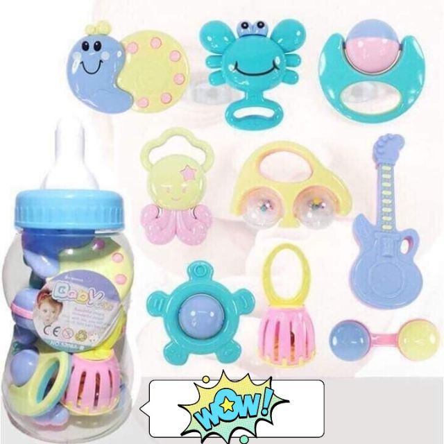 ️Bộ đồ chơi bằng nhựa an toàn. Thích hợp cho bé từ giai đoạn 3 months kích thích khả năng cầm lắm. Thị giác cho trê