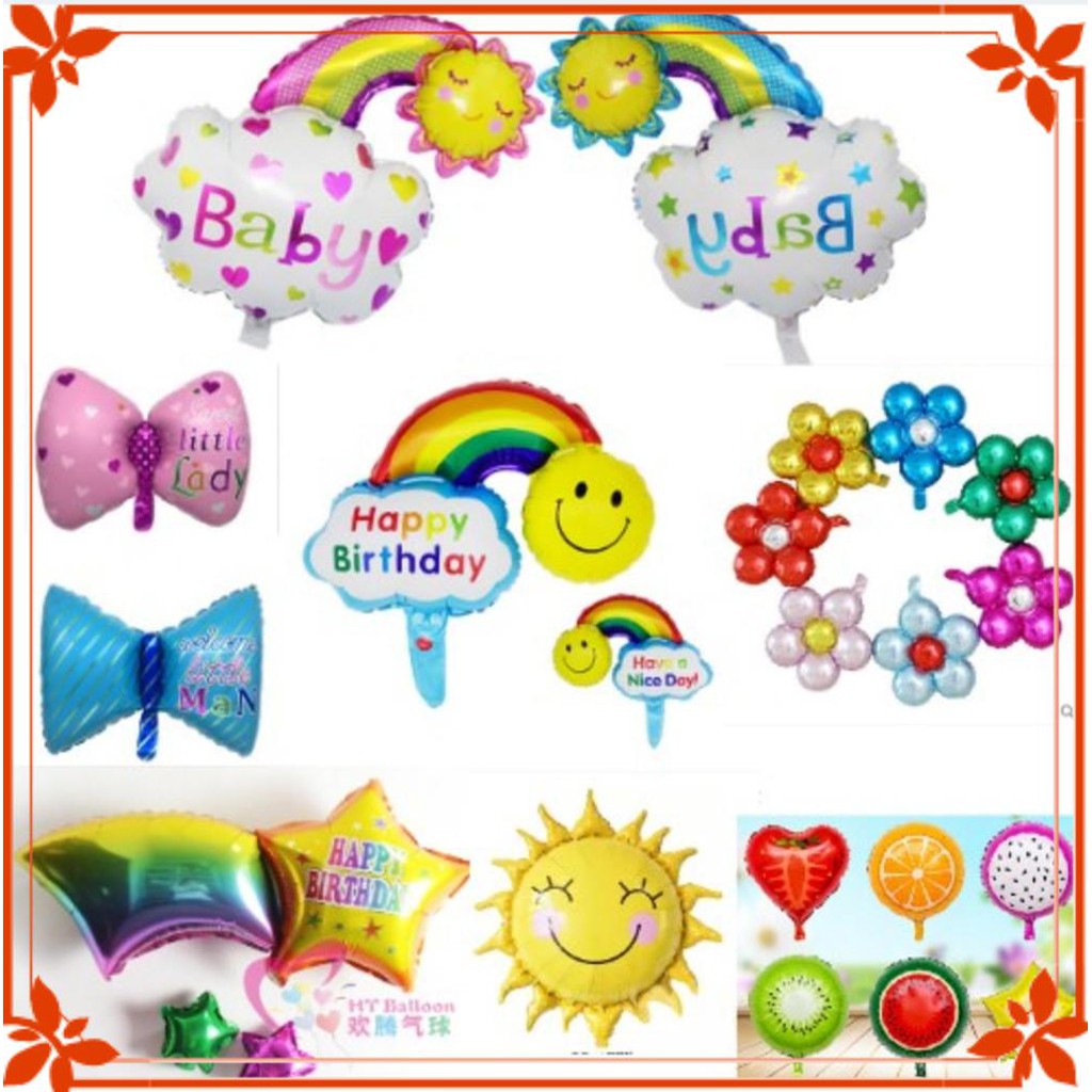 ️Thông tin sản phẩm:TẤT CẢ CÓ SẴN TẠI SHOP -Bóng bay lưu tinh 70*35 (sao băng ) -Bóng bay cầu vồng BABY :xanh và hồng 77*48cm -Bóng bay cầu vồng happy birthday : size nhỏ ,size trung -Bóng bay kẹo xoắn 46*46 :xanh trời, đỏ, xanh lá, xanh trời, đỏ, hồng, tím, vàng,cam -Bóng bay hình bông hoa 5 cánh 58*50 :Đỏ,đỏ hồng, xanh, vàng,hồng -Bóng bay hoa mặt cười, hoa mặt cười ông mặt trời -Nơ kết bươm bướm size to : xanh-hồng -Bóng bay quả :thanh long, khê, dâu, cam, dưa hấu size 18in tầm 30-40cm -Bóng cậy dừa xanh 90x80 -Bóng nơ kết bướm xanh hồng size đại 80cm Lưu ý:tất cả bóng là bóng chưa bơm,bóng sử dụng van khoá 1 chiều tự động đóng sau khi bơm sử dụng đc nhiều lân #Bóngbaytrangtrí #bongsaobăng #bóngcầuvồng #bóngmặttrời #bònghoa5cánh #bóngnơkêtbướm #bóngquả #bongbayhinhngonghĩnh #phukientrangtrisinhnhat #bongbaysinhnhat #happpybirthday #bétraibégái #bongbaycaydua #sinhnhatchobeyeu #tiecthoinoichobe