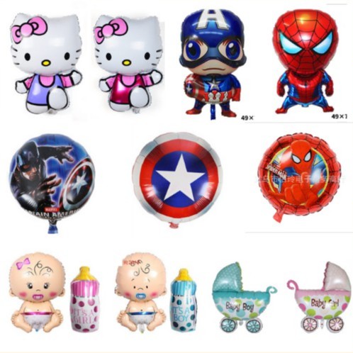 Bóng bay hình trang trí sinh nhât,đầy tháng cho bé theo nhiều chủ đề(Đội trưởng mỹ-người nhện-khiên)