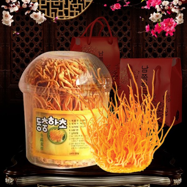 ️Thành phần : 100% đông trùng hạ thảo giống Militaris Corodyceps sinnesis được nuôi cấy trong giá thể dinh dưỡng tương tự trên con đông trùng tây tạng. Công dụng đông trùng hạ thảo dạng bông Hàn Quốc : Bồi bổ cơ thể, bổ thận tráng dương giúp ăn được ngủ được hấp thụ thức ăn tốt hơn điều hòa phục hồi chức năng sinh lý Nước đông trùng hạ thảo tốt cho những người bị hen suyễn cảm cúm vặt. - Làm hạ huyết áp ở người cao huyết áp, giữ ổn định nhịp tim, tăng cường tác dụng lưu thông máu trong cơ thể; - Tăng cường tính miễn dịch không đặc hiệu, cũng như năng lực thực bào của các tế bào miễn dịch. Nâng cao năng lực chống ung thư của cơ thể; - Làm chậm quá trình lão hóa của cơ thể, hạn chế bệnh tật của tuổi già; - Tăng cường tác dụng an thần, trấn tĩnh thần kinh; - Tăng cường chức năng tiêu hóa và hấp thu các chất dinh dưỡng; - Có tác dụng cường dương và chống liệt dương. Bổ thận tráng dương tăng cường sức khỏe bổ sung hoocmon sinh dục, điều hòa nội tiết tố giúp cân bằng sinh lý, cơ thể khỏe mạnh hơn. Sử dụng để phòng ngừa hay điều trị ho cảm hen suyễn rất tốt. Hướng dẫn sử dụng: Có thể kết hợp táo tàu gừng nấm linh chi kết hợp với 25gr bông đông trùng hạ thảo đun với 3 lít nước, khi nước sôi để lửa nhỏ đến khi còn khoảng 2 lít nước chắt nước cho 2 lít nước vào đun tiếp đến khi còn 1 lít rồi chắt ra hòa chung vào chia ra uống để tủ lạnh ngày uống 1 đến 2 lần mỗi lần 1 tách cà phê. Ngoài ra còn một số phương pháp sau: Phương pháp chế biến Bông Đông Trùng Hạ Thảo dạng bông Hàn Quốc : 1. Trùng thảo -hầm Vịt: Dùng 10-15 nhánh "Bông đông trùng hạ thảo", 1 con vịt đực già, hầm chung, húp nước súp, ăn cái. Phương thuốc này có tác dụng từ âm bổ thận, điều trị thích hợp các chứng váng đầu hoa mắt, ù tai điếc tai, đau răng, phiền muộn mất ngủ, lòng bàn chân bàn tay nóng ran, ho hụt hơi, lưng hông và các khớp xương đau nhức... 2. Trùng thảo -hầm Gà: "Bông đông trùng hạ thảo" 10-15 nhánh, gà đen 1 con, làm sạch lông, moi hết phủ tạng, hầm chung húp nước, ăn cái. Phương thuốc này có tác dụng bổ thận trợ dương, chữa trị các chứng đầu óc choáng váng, trí nhớ giảm sút, tim đập dồn dập, nhìn đồ vật mờ ảo, chập chờn, cơ thể suy nhược dễ cảm cúm, đổ nhiều mồ hôi, sợ lạnh.... 4. Trùng thảo -hấp Cơm: "Bông đông trùng hạ thảo" 5-10 nhánh, rửa sạch, hấp cơm chín, ăn. Phương thuốc này có tác dụng điều trị bệnh viêm gan B rất hiệu quả. 5. Bông đông trùng hạ thảo mật ong: Bông đông trùng hạ thảo xay trộn mật ong ngày ăn 1- 2 thìa cafe 6. Bông Đông trùng hạ thảo ngâm Rượu. Hạn sử dụng: 21/06/2020 Chú ý : Hiệu quả của sản phẩm còn phụ thuộc vào cơ địa của mỗi người. Lưu ý: sản phẩm không phải là thuốc nên không có chức năng thay thế thuốc chữa bệnh.
