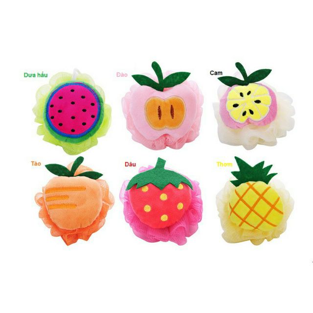 ️???Bông tắm hoa quả - ??Chất liệu: vải, lưới PE - Kích thước: 13 cm - Bông tắm hình trái cây ngộ nghĩnh với thiết kế tinh tế gồm 2 mặt khác nhau 1 mặt vải bông và 1 mặt lưới PE giúp việc vệ sinh làn da thêm hoàn hảo nhờ công dụng: + Tạo bọt sữa nhiều hơn, tinh chất trong sữa tắm sẽ dễ dàng thẩm thấu qua da + Bông vải mềm mại nhẹ nhàng nâng niu làn da nhạy cảm của bạn + Massage cơ thể giúp lưu thông máu huyết tốt hơn + Thiết kế hình trái cây đẹp mắt làm nhà tắm thêm sinh động ?Liên tục tuyển CTV toàn quốc