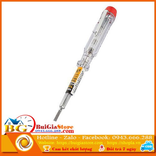 ️Bút thử điện thiết kế chắc chắn an toàn cho người sử dụng chất lượng tốt Phạm vi nguồn điện thử 100V~500V Thiết kế nhỏ, trọng lượng nhẹ, đẹp, an toàn, bền lâu, dễ sử dụng. Kích thước: 14 x 1.8 cm Khi dùng, ta đặt một đầu bút vào mạch cần đo, ngón tay ta đặt tiếp xúc với phần đỉnh kim loại phía trên đầu bút. Nếu mạch có điện, bóng đèn nê-on trên bút sẽ sáng lên. ------------------------------------------------------------- Bùi Gia Store là địa chỉ đáng tin cậy cung cấp sỉ lẻ đồng hồ định vị, thiết bị an ninh, thiết bị điện, linh - phụ kiện máy tính giá tốt nhất thị trường. Chất lượng sản phẩm tốt - tư vấn và bảo hành chu đáo. Liên hệ: - Hotline - Zalo - Facebook: 0943.666.288 - Website: https://shopla.vn - https://buigiastore.com - Add: Số 58 Ngọc Trục, Đông Lỗ, Ứng Hòa, HN