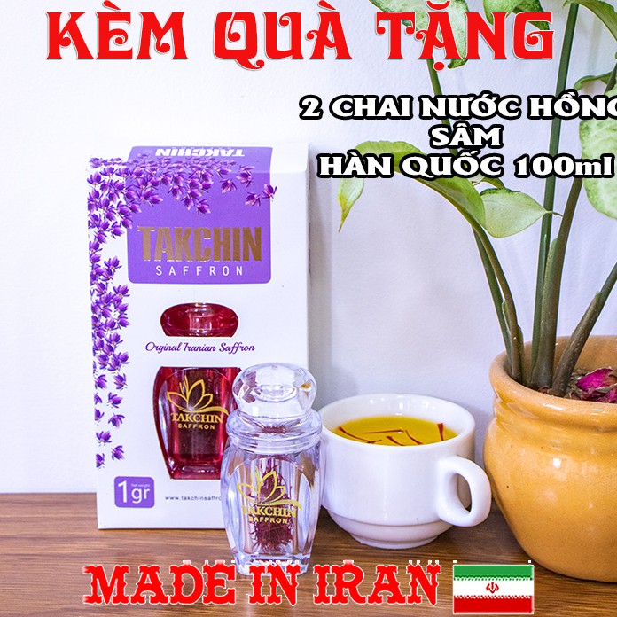 [Cam kết chính hãng]- 1gr Saffron Takchin Iran - Nhụy hoa nghệ tây Iran- tặng kèm 2 chai nước hồng sâm hàn quốc