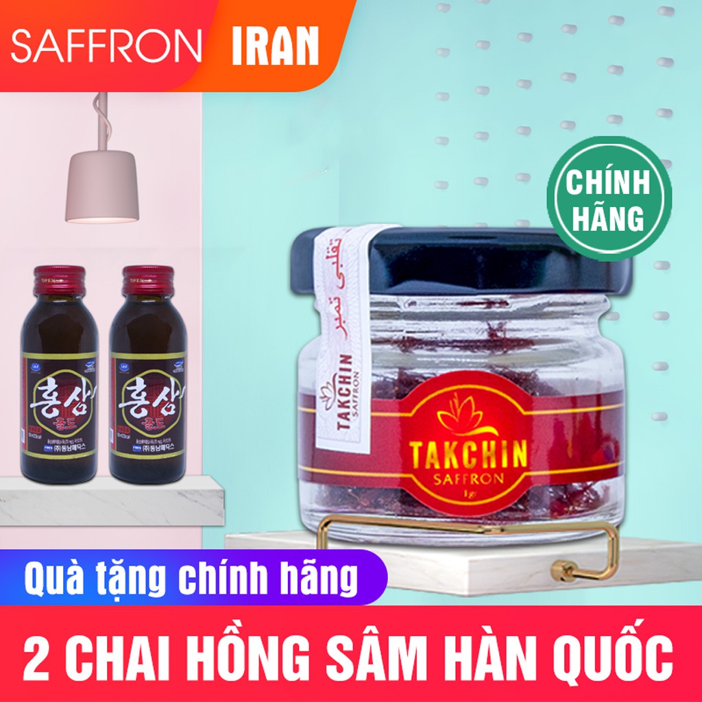 [Cam kết chính hãng]- 1gr Saffron Takchin Iran - Nhụy hoa nghệ tây Iran- tặng kèm 2 chai nước hồng sâm Hàn Quốc