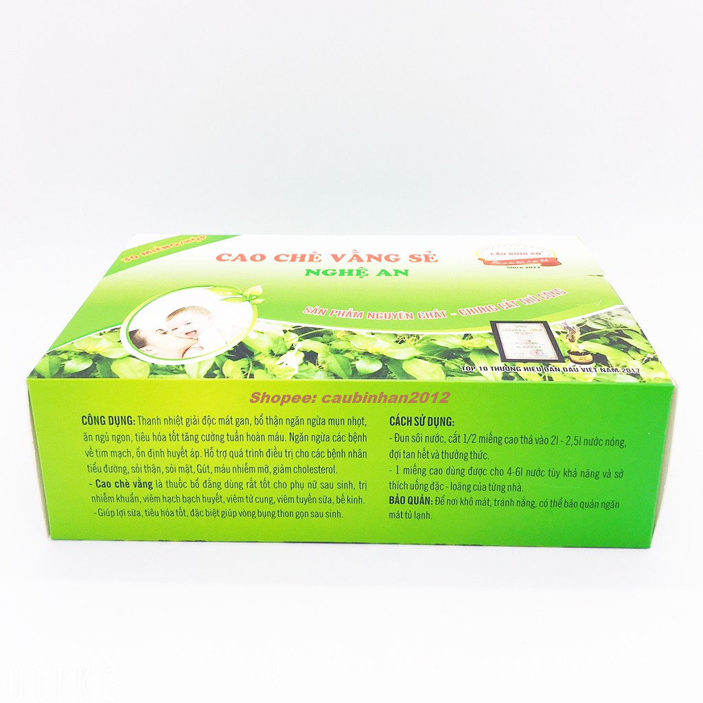 ️Cao Chè Vằng Cầu Bình An Nguyên Chất Hộp 30 Miếng Cao: Cao chè vằng là sản phẩm được chiết xuất từ 100% thân cây và lá cây vằng sẻ được thu hái từ các vùng núi cao miền Trung Việt Nam. Bằng kinh nghiệm dân gian lâu đời và công nghệ chiết xuất hiện đại, sản phẩm được cô đặc và giữ lại những đặc tính tốt nhất của chè vằng. Và được cô đặc lại thành những miếng cao nhỏ đóng gói rất tiện lợi cho người sử dụng. 1, Công Dụng của Cao Chè Vằng Cầu Bình An: - Cao Chè Vằng có tính mát. Tác dụng thanh nhiệt, giải độc, mát gan, bổ thận, ngăn ngừa mụn nhọt, ăn ngon ngủ ngon, tiêu hóa tốt, tăng cường tuần hoàn máu. Người già ăn ngon ngủ sâu giấc. - Ngăn ngừa các bệnh về tim mạch, ổn định huyết áp. Hỗ trợ quá trình điều trị cho các bệnh nhân tiểu đường, sỏi thận, sỏi mật, bệnh nhân đang điều trị bệnh Gút, máu nhiễm mỡ, giảm cholesteron. - Lá chè vằng có chứa alcaloid, nhựa, flavonoid, có tác dụng kháng khuẩn, chống viêm, làm tăng nhanh tái tạo tổ chức, làm mau lành vết thương và không độc. - Tác dụng đặc biệt của lá vằng đối với phụ nữ sau sinh cũng đã được kiểm nghiệm. Là thuốc bổ đắng dùng rất tốt cho phụ nữ sau khi sinh con. - Chè vằng trị nhiễm khuẩn sau sinh, viêm hạch bạch huyết, viêm tử cung, viêm tuyến sữa, bế kinh, kích thích tiêu hóa, giúp ngủ ngon, thông kinh mạch. Sau khi sinh em bé, các mẹ uống Cao chè vằng khoảng 03 tháng liên tục sẽ thấy tác dụng rõ rệt nhất là lợi sữa, tiêu hóa tốt, đặc biệt giúp vòng bụng thon gọn sau sinh. - Thời gian dùng Chè vằng đối với phụ nữ nuôi con bằng sữa mẹ là trong thời gian cho con bú. Sau khi sinh em bé nên uống càng đặc càng tốt (tiêu hóa tốt cả mẹ cả con) và con bú thì bụng rất ổn. Uống càng lâu càng tốt. Nếu có điều kiện, nên dùng Chè Vằng quanh năm thay cho nước uống hằng ngày cho cả gia đình. 2, Cách Sử Dụng Cao Chè Vằng Cầu Bình An: - Đun sôi nước, cắt 1/5 miếng cao thả vào 2l nước nóng đợi tan hết và thưởng thức. 3, Quy cách: Hộp 30 miếng cao. 4, Bảo quản: để nơi khô ráo thoáng mát, nên để tủ lạnh sẽ dễ tách cao ra khỏi vỏ. 5, Ngày sản xuất: In trên bao bì. 6, Hạn sử dụng: 2 năm kể từ ngày sản xuất. 7, Lưu ý: Sản phẩm không phải là thuốc và không có tác dụng thay thế thuốc chữa bệnh. Mời quý khách đặt hàng Cao Chè Vằng Cầu Bình An Nguyên Chất Hộp 30 Miếng Cao ạ. #caochevang #caubinhan #freeship #banbuon #chevang #caochevangse #caochevangloisua #caochevangcaubinhan #caochevangnguyenchat #chevang #cao_chè_vằng #chè_vằng #cầu_bình_an #cao_chè_vằng_cầu_bình_an #loisua #lợi_sữa #mất_sữa #kích_sữa #thơm_sữa