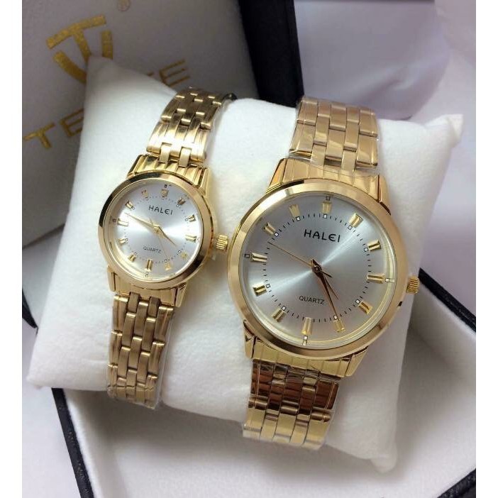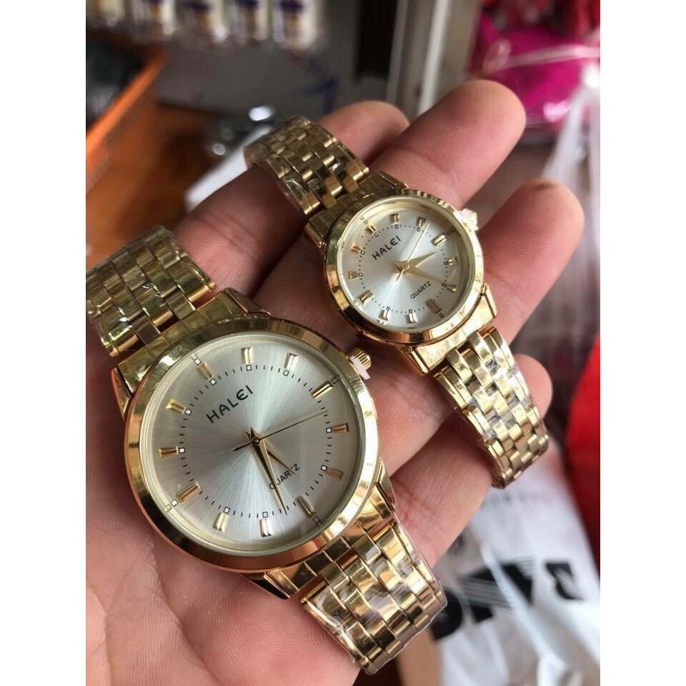 Cặp Đồng hồ đôi Halei máy Nhật mạ vàng không gỉ chống nước, chống xước.