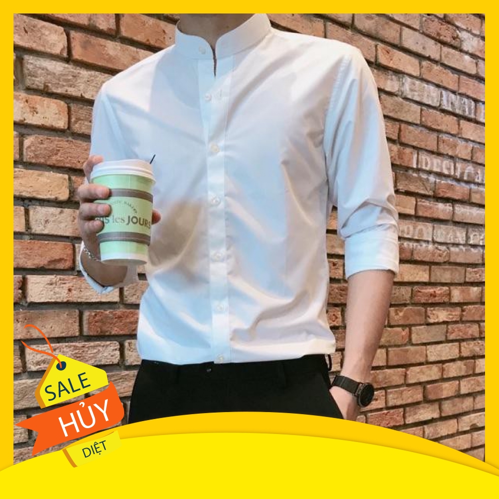 (CHỈ 3 NGÀY) Sơ mi nam cổ tàu Màu Trắng loại đẹp dáng ôm body hàn quốc,không nhăn - Dài tay