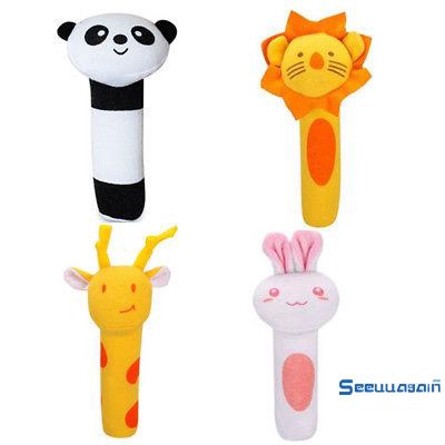 ️Description Size: Approx: 14cm (Length), thickness: 4cm (width) Total: 1 pcs baby rattle toy animal design Material: Cloth There is built-in BB Squeaker inside the handhold part of the toy, it makes noise when pressing it! Feature: The middium sized handhold part is suitable for baby´s grasp, it makes fantastic sound when shaking it, which promotes the growth and development of kids! Color and design send by random. Package included: 1 x baby rattle toy animal design