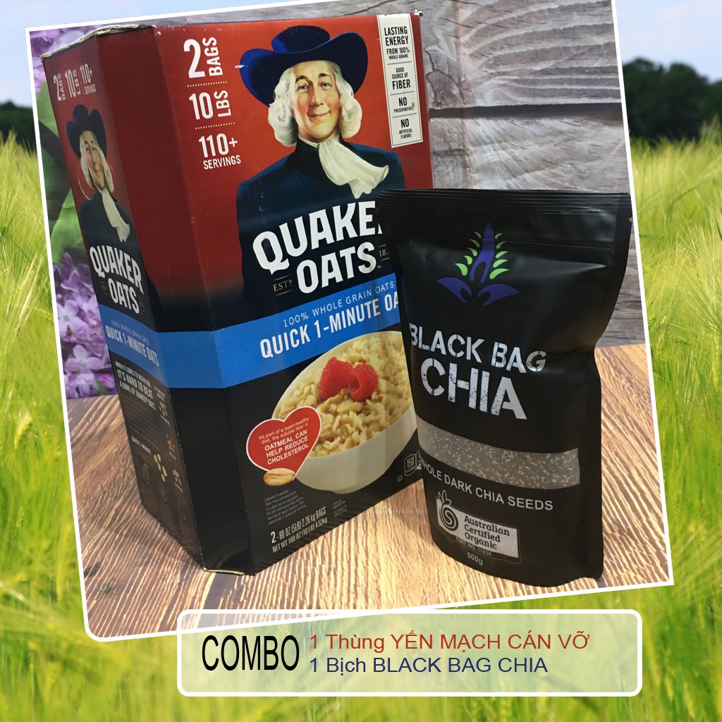 Combo 1 thùng yến mạch Quaker Mỹ cán vỡ khối lượng 4kg5 và 1 bich chia Úc khối lượng 500g.