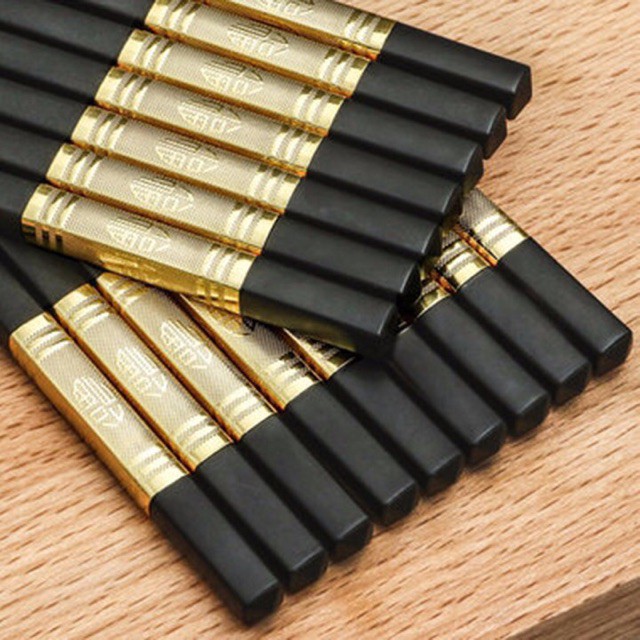 ️COMBO 10 ĐÔI ĐŨA ĐẦU BỌC HỢP KIM VÀNG SANG TRỌNG BỀN ĐẸP DÙNG MÃI KHÔNG HỎNG ==================================== Hộp đũa hợp kim Đen HY203S(Đen) - Thân đũa dài 27cm, không có tính hấp thụ; sử dụng trong thời gian dài sẽ càng bóng đẹp - Dễ dàng vệ sinh sau khi sử dụng, đầu đũa có độ nhám; sần; tiện dụng khi gắp đồ ăn - Đũa khảm hợp kim được tạo thành từ chất liệu cao phân tử ( Polymer) và sợi thủy tinh. - Thân đũa cao thẳng, bóng và được kết hợp chặt chẽ chống trơn trượt khi sử dụng. - 1 hộp 10 đôi đũa rất sang trọng và tiện dụng #duahopkim #giahuydiet #giare #bendep #sangtrong #dua #duadep
