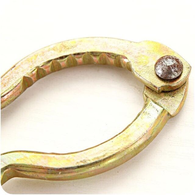 ️- chất liệu: kìm được làm từ chất liệu thép hợp kim mạ kẽm, không rỉ. Đầu kìm được tán bằng đinh tán rất chắc chắn, tăng độ bền cho kìm. Cán kìm được bọc bởi lớp nhựa đỏ giúp bạn khôn bị đau tay khi bóc. - ưu điểm: hàm bên trong kìm có thiết kế xẻ rãnh giúp kẹp chắc quả, hạt, tránh xê dịch, khiến người sử dụng dễ dàng bóc tách hơn. Hơn nữa kìm được thiết kế với 2 nấc to và nhỏ nên bạn có thể sử dụng cho những loại quả, hạt khác có kích thước khác nhau - kích thước: 7x5cm - màu sắc: vàng đồng, đỏ - xuất xứ: trung quốc