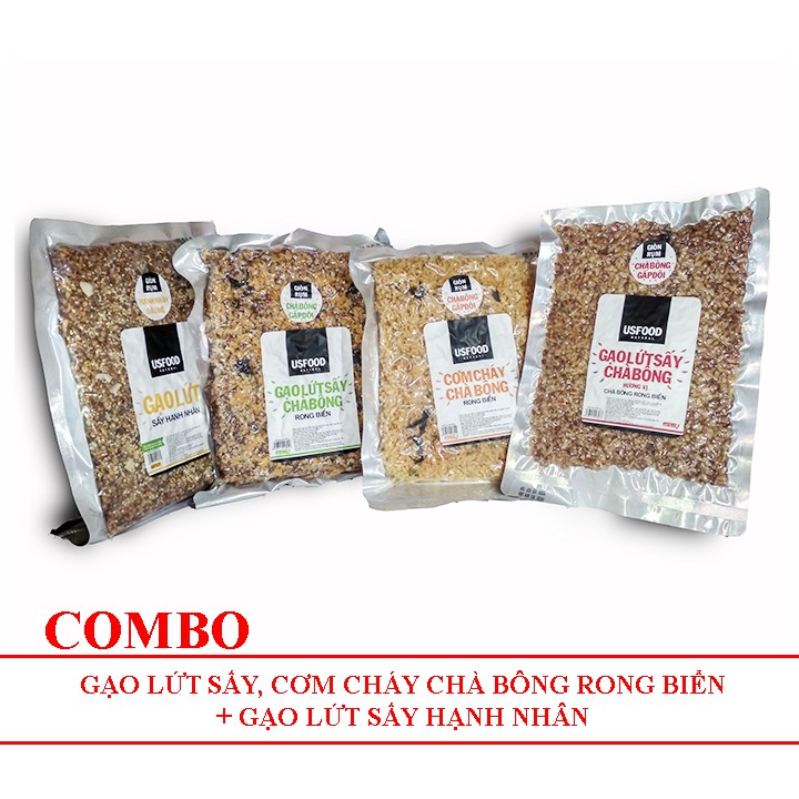 ️COMBO 4 GÓI SẤY GIÒN RỤM US FOOD Gồm 4 gói: Cơm cháy chà bông rong biển US FOOD 200g, Gạo lứt sấy chà bông rong biển US FOOD 200g dạng miếng và dạng rời, Gạo lứt sấy hạnh nhân 200g. Thực phẩm dưỡng sinh cân bằng cơ thể Giầu chất dinh dưỡng, không phẩm mầu, hóa chất bảo quản Dùng làm bữa ăn tiện lợi, an toàn và tiết kiệm, tốt cho sức khỏe Giúp thanh lọc cơ thể, cải thiện hệ tiêu hóa, bảo vệ gan và thận Có thể dùng làm đồ ăn vặt cho người ăn chay, ăn mặn, ăn kiêng CƠM CHÁY CHÀ BÔNG RONG BIỂN US FOOD 200g Thành phần: Gạo (90%), chà bông(5%), nước mắm, muối i-ốt, rong biển, ớt, hành, tỏi, đường, dầu thực vật, chất diều vị (621), chất chống oxi hóa (316) => Sự kết hợp độc đáo từ cơm cháy gạo thơm, rong biển sấy giòn cùng sốt mắm hành ớt và chà bông thịt tạo nên món ngon hấp dẫn. - Nguyên liệu được tuyển chọn kỹ càng. - Quy trình sản xuất với trang thiết bị hiện đại. - Hệ thống quản lý chất lượng an toàn vệ sinh thực phẩm. GẠO LỨT SẤY HẠNH NHÂN US FOOD 200g Thành phần: Gạo lứt (96%), chà bông thịt (3%), nước mắm, muối i-ốt, rong biển, ớt, hành, tỏi, đường, dầu thực vật, chất điều vị (621), chất chống oxi hóa (316) - Gạo lứt chứa rất nhiều thành phần dinh dưỡng: vitamin B1, B2, B3, B6, chất đạm, chất xơ,... - Hạnh nhân có chứa nhiều chất dinh dưỡng rất có lợi cho hệ tim mạch: Magie, Vitamin E, chất xơ,... => Sự kết hợp từ gạo lứt sấy giòn, hạnh nhân, đậu mè rang cùng mạch nha không những tạo nên món ngon hấp dẫn, mà mang lại rất nhiều tác dụng tốt cho cơ thể: Kiểm soát cân nặng, cân bằng vóc dáng. Trẻ hóa làn da. Phòng tránh UNG THƯ và các bệnh về TIM MẠCH GẠO LỨT SẤY CHÀ BÔNG RONG BIỂN US FOOD 200g Thành phần: Gạo lứt (96%), chà bông thịt (3%), nước mắm, muối i-ốt, rong biển, ớt, hành, tỏi, đường, dầu thực vật, chất điều vị (621), chất chống oxi hóa (316) - Gạo lứt chứa rất nhiều thành phần dinh dưỡng: vitamin B1, B2, B3, B6, chất đạm, chất xơ,... - Rong biển khô rất giàu chất xơ, đạm, sinh tố và chất khoáng cần thiết cho cơ thể. => Sự kết hợp từ gạo lứt sấy giòn, rong biển cùng sốt mắm hành ớt và chà bông thịt không những tạo nên món ngon hấp dẫn, mà mang lại rất nhiều tác dụng tốt cho cơ thể: Kiểm soát cân nặng, cân bằng vóc dáng. Trẻ hóa làn da. Phòng tránh UNG THƯ và các bệnh về TIM MẠCH Phòng chống bệnh ĐÁI THÁO ĐƯỜNG. #gaolut #comchay #comchaychabongrongbien #comchaynhalam #comchaysaigon #hanhnhan #anvat