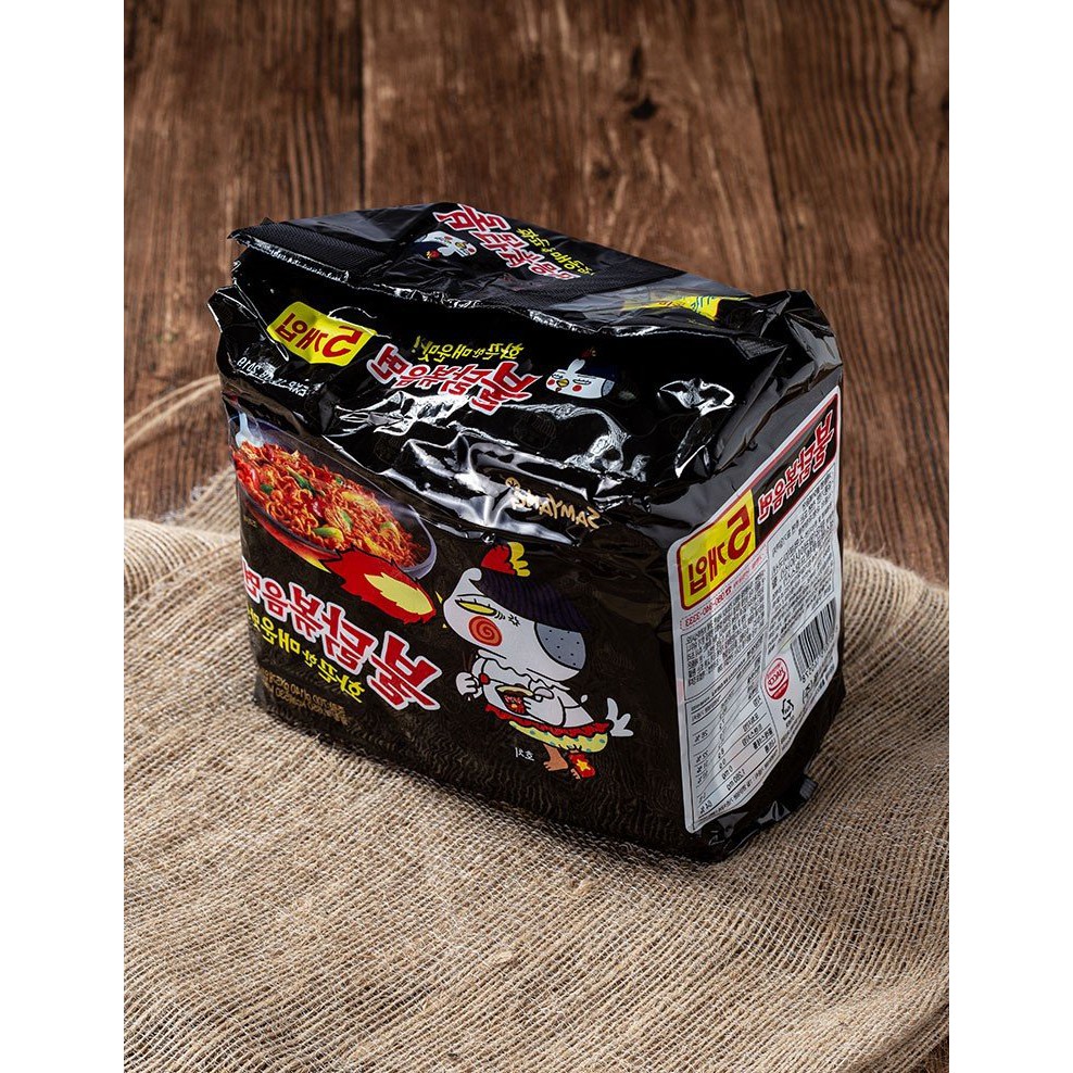 ️MÌ GÀ CAY SAMYANG HÀN QUỐC Trọng lượng: 140g Mì khô gà cay là một sản phẩm hot những năm gần đây của Samyang. Chỉ sau vài năm ra mắt, nó đã mang lại doanh thu khổng lồ cho Samyang. Vì sao nó lại hot như vậy➥ Bởi nó là loại mì không phải chỉ cay mà là siêu cay, tạo nên sự mới lạ và mang nhiều tính thách thức. Mọi người có thể dùng nó để chơi trò xem ai ăn nhanh cực thú vị. Nếu bạn là người không chịu được cay thì đây có thể là một ấn tượng nhớ đời. Còn khi đã là một “cao thủ” ăn cay thì đó sẽ là một trải nghiệm tuyệt vời nhé bạn! Không giống những loại mì khác thường chỉ bao gồm gói gia vị và gói rau. Sản phẩm Mì khô gà cay của Samyang chỉ có một gói nước sốt cực cay và một gói chứa rong biển, hat mè khô vô cùng khác biệt. Chắc chắn sẽ khiến cho tô mì của bạn thêm màu sắc và càng thơm ngon. Thành phần: Bột mì, tinh bột sắn biến tính, dầu cọ, gluten bột mì, muối, chất nhũ, xốt tương, đường, chiết xuất gà, hương gà dầu nành, chất điều vị, hành, dầu ớt, gia vị ớt, tỏi, tinh bột biến tính, bột tiêu, bột ca ri, Vitamin B1,...Gói nước sốt siêu cay. Gói mè (vừng) và rong biển sấy khô. - Cách chế biến: Dùng chảo đun sôi 2-3 chén nước. Cho mì nào nưới sôi trong khoảng 3 phút. Khi mì đã chín, bạn đổ nước luộc mì ra nhưng nên chừa lại một ít khoảng 3-4 muỗng nước. Cho gói tương đỏ vào và trộn đều lên. Gói tương này rất cay vì thế tùy theo khẩu vị mà bạn cho một lượng vừa phải. Tiếp tục cho gói hạt mè và rong biển khô vào chảo và trộn đều cho ráo nước. Sau khi nấu, bạn cho ra tô và có thể thêm rau cải, trứng chiên, xúc xích, …tùy thích. Mì khô gà cay Samyang là một sản phẩm đến từ thương hiệu nổi tiếng tại Đại Hàn Dân Quốc. Sản phẩm được làm từ các nguyên liệu tươi ngon, vị cay hấp dẫn, không chứa chất bảo quản và an toàn cho người sử dụng. Đặc điểm nổi bật : Mì khô gà cay Samyang là thực phẩm an toàn cho sức khỏe con người, hoàn toàn không chứa chất tạo màu, không chất bảo quản. Sản phẩm được chế biến trên dây chuyền công nghệ hiện đại và khép kín tại Hàn Quốc, tạo nên vị cay thơm ngon, hấp dẫn và đầy thú vị khi thưởng thức. Sản phẩm được đóng gói nhỏ gọn, tiện lợi giúp bạn dễ dàng bảo quản, có thể giải quyết nhanh khi bạn đang đói, hoặc những lúc học tập hoặc làm việc đêm khuya.