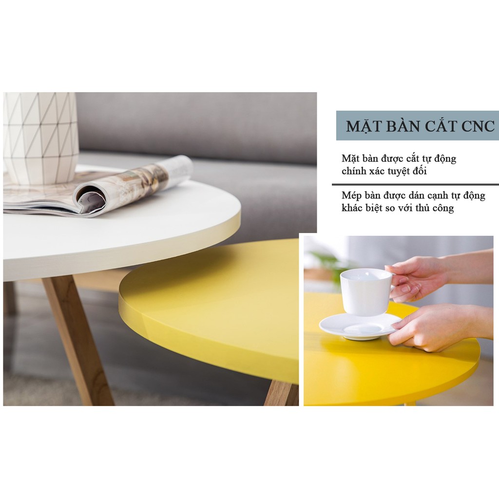 ️*Chú ý: Nhập mã IGEA20K để được giảm thêm 20k [COMBOO BÀN TRÀ SOFA] Kích thước: 1 bàn mặt rộng 50cm cao 52cm, 1 bàn mặt rộng 40cm cao 45cm Màu sắc: Trắng - Vàng Chất liệu: Mặt bàn sản xuất từ gỗ MDF phủ melamin cao cấp chống xước chống nước bề mặt sáng bóng không mờ như các sản phẩm kém chất lượng. Chân bàn sản xuất từ gỗ sồi vân gỗ đều và đẹp. Bảo hành: 12 tháng, đổi trả ngay nếu không giống mô tả. -------------------------- ➥ Bạn đang cần tìm bàn trà đẹp cho phòng khách mà chưa tìm được mẫu bàn ưng ý. ➥ Chiếc bàn bạn muốn có thể làm tag đầu giường, bàn uống trà thư giãn ngoài ban công. ➥ Bạn muốn sở hữu một chiếc bàn hiện đại tiết kiệm diện tích tối đa, đễ dàng kết hợp nội thất. ➥ Bạn đang tìm món quà tặng tân gia độc đáo. ➥ Đặc biệt chất lượng cao - Giá xuất xưởng ➥ ĐẾN NGAY NỘI THẤT TIMBOO➥ ️❋ Với kích thước nhỏ gọn và khả năng di chuyển dễ dàng bạn có thể để bàn ở đâu tùy thích, làm bàn học bàn uống trà hay bàn ăn... ❋ Mang phong cách nội thất #scanvadian hơi thở bắc âu bàn trà vintage là sản phẩm chưa bao giờ ngừng HOT ?BÀN TRÀ NỘI THẤT TIMBOO? ✔ Mặt bàn được sản xuất bằng gỗ MDF nhập khẩu chống ẩm không cong vênh mối mọt. ✔️ Bề mặt phủ melamin cao cấp chống xước, chống nước tuyệt đối dễ dàng vệ sinh. ✔️ Vận chuyển dễ dàng lắp ráp nhanh chóng. ✔️ Cam kết chất lượng cao - Giá tại xưởng. #freeship #khuyenmai #bantra #bantratron #bantradep #bantrago #bantrasofa #bantracafe