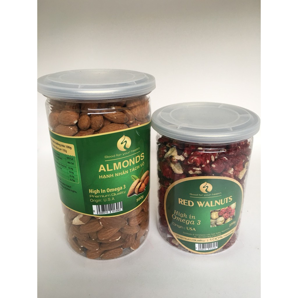 ️➥ Combo gồm: ➥ Nhân Hạt Óc Chó Đỏ Đã Tách Vỏ: 250g. ➥ Hạnh Nhân Tách Vỏ Mỹ: 500g. ➥ Công dụng Combo Nhân Hạt Óc Chó Đỏ Mỹ - Hạnh Nhân Tách Vỏ Mỹ Nguyên Vị: ➥ Cân bằng lượng Cholesterol trong cơ thể. Giúp tăng hàm lượng Cholesterol tốt (HDL), giảm đáng kể hàm lượng Cholesterol xấu (LDL). ➥ Bảo vệ, cải thiện sức khỏe tim mạch: Axit béo Omega-3, khoáng chất, Protein, Vitamin E. ▶ Hỗ trợ cho khả năng vận động của tim. Hạ thấp mức Homocystein (độ đóng mảng trong mạch máu). ➥ Rất tốt với bệnh nhân huyết áp cao. Cân bằng và điểu hòa huyết áp nhờ Potassium. ➥ Phòng chống một số loại bệnh ung thư, điển hình là ung thư kết tràng, ung thư vú… ▶ Giúp bệnh nhân ung thư phục hồi trong giai đoạn hóa trị, xạ trị nhờ Hợp chất chống Oxy hóa. ?➥ Tốt cho phụ nữ có thai và em bé: ▶ Cung cấp Omega-3, Vitamin E, Phốt Pho, Axit Amin L-Arginne. ?➥ Giúp bà mẹ bổ sung Acid-Folic cho thai nhi, giảm các khuyết tật bẩm sinh của bé. ?➥ Thúc đẩy sự phát triển đại não của thai nhi và trẻ nhỏ, em bé sinh ra sẽ thông minh, khỏe mạnh. ➥ Giảm thiểu đáng kể các bệnh viêm nhiễm phụ khoa, u xơ tử cung, ung thư cổ tử cung… ➥ Tăng khả năng làm cha: Bổ thận, cải thiện lượng tinh binh do chứa nhiều Acid A-Linolenic. ➥ Giảm béo: Các chất và Tinh dầu trong hạt Hạnh Nhân cho cảm giác chóng no, tránh ăn quá nhiều. ➥ Phòng ngừa sạn mật, giảm rủi ro mắc bệnh Alzheimer, tăng cường chức năng hệ miễn dịch. ➥ Tốt cho da và tóc: ▶Phòng ngừa tình trạng mụn đầu đen, giữ ẩm, bảo vệ da không bị khô, tăng độ đàn hồi cho da. ▶ Giảm nếp nhăn, chống lão hóa da, giảm sự tác động và sản sinh các gốc tự do trong cơ thể. Cung cấp Vitamin E tự nhiên, an toàn, giúp sáng da, mềm mịn hơn. ➥ Nhuận trường - Ngăn ngừa sỏi túi mật, táo bón mãn tính do cung cấp nhiều chất Xơ. ➥ Bảo vệ, giúp xương chắc khỏe. Tránh hiện tượng giảm khoáng chất khiến xương bị yếu. ➥ Thực phẩm của trí não: ▶ Axit béo Omega-3, chiếm 60% bộ não. Tăng cường trí nhớ, nhận thức. Giảm nguy cơ mắc bệnh trầm cảm và các vấn đề hành vi. ➥ Tránh tình trạng mất ngủ. Là một nguồn tự nhiên và phong phú chất Melatonin. ➥ Tốt cho bệnh nhân tiểu đường loại 2: Tạo ra Insulin, loại chất các bệnh nhân tiểu đường không có. ➥ Cách dùng Combo Nhân Hạt Óc Chó Đỏ Mỹ - Hạnh Nhân Tách Vỏ Mỹ Nguyên Vị: ➥ Nam giới cải thiện chất lượng tinh trùng: Dùng khoảng 75g/ngày. ➥ Dùng làm bánh, làm nhân Sôcôla, ép lấy dầu, dùng với sữa tươi, ngon hơn khi bỏ óc chó vào lò vi sóng với nhiệt độ 160 độ rồi lấy ra bóc ăn, sẽ có vị thơm và bùi hơn. ➥ Bảo quản Combo Nhân Hạt Óc Chó Đỏ Mỹ - Hạnh Nhân Tách Vỏ Mỹ Nguyên Vị: ➥ Nơi thoáng mát khô ráo, thoáng mát. Tránh ánh nắng trực tiếp. ➥ Không để hở không khí, đóng kĩ sau mỗi lần sử dụng, cho vào lọ đậy kín, bảo quản tốt nhất ngăn mát tủ lạnh. ➥ Xuất xứ: Mỹ. ➥ HSD: 1 năm (Cập Nhật liên tục) #ănvặt #hạnhnhân #hạnhnhânmỹ #hạthạnhnhân #vivufood #quàtặng #quàbiếu #quàtết #hạnhnhântáchvỏ #phụnữmangthai #occho #ócchó #ănkiêng #thainhi #timmạch #giảmcân #sỉhạnhnhân #sỉócchó