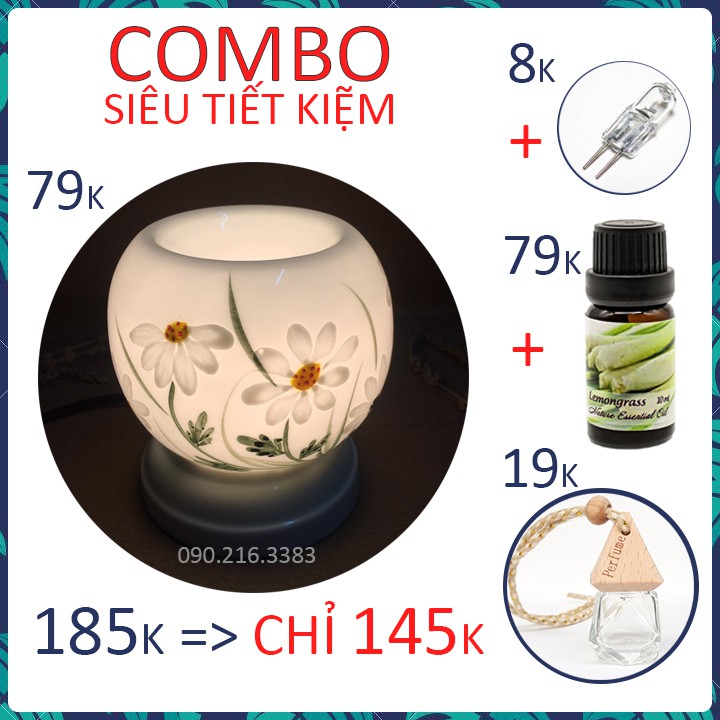 ️Cảm ơn bạn đã có sự lựa chọn quá thông minh, bạn sẽ rất hài lòng với bộ Combo gồm: - 1 #đèn_xông_tinh_dầu 79k (có rất nhiều mẫu, shop sẽ chọn NGẪU NHIÊN nha, shop cập nhật mẫu mới thường xuyên) - 1 #tinh_dầu_sả_chanh_Pháp 79k (Hoặc #bạc_hà_Ấn_Độ hay #vỏ_chanh_Pháp) Chọn mùi gì thì ib shop nha hoặc shop sẽ mặc định gửi SẢ CHANH PHÁP nhé vì mùi này rất phổ thông, ai cũng thích :D - 1 #lọ_treo_khuếch_tán thuỷ tinh 19k - 1 #bóng_đèn_dự_phòng 8k Tổng là 185k ==> Combo chỉ còn 145k thôi nhé! Tiết kiệm 40k Nhanh tay vì số lượng Combo có hạn....!!!!! ============ ĐÈN TINH DẦU BÁT TRÀNG CAO CẤP XUẤT EU cao 12cm - Cỡ Vừa nhé! Chọn mẫu ngẫu nhiên hoặc ib mẫu yêu thích Hàng được chọn lọc kĩ lưỡng từ những làng Gốm Bát Tràng, đa phần khách nước ngoài lựa chọn làm món quà tặng người thân khi về nước. Chất lượng sản phẩm đạt tiêu chuẩn, nắn nót trên từng đường nét của sản phẩm. ĐÂY LÀ SẢN PHẨM ĐƯỢC CHỌN LỌC, KHÔNG PHẢI SẢN PHẨM ĐẠI TRÀ ĐÂU NHA! ========== Cách sử dụng đèn xông tinh dầu như sau: - Bước 1: Cắm điện tạo nhiệt cho đèn. Đèn có 1 chiết áp dùng để tăng và giảm độ sáng. Càng sáng thì nhiệt càng cao, xông tinh dầu càng nhanh - Bước 2: Đổ nước ấm (hoặc nóng) lên đĩa của đèn (nước ngập khoảng 1/2 đến 2/3 đĩa của đèn). - Bước 3: Nhỏ 3-5 giọt tinh dầu lên trên đĩa nước của đèn. ------- Lưu ý khi sử dụng đèn xông tinh dầu : – Không sử dụng nước lạnh, sẽ làm giảm tác dụng của tinh dầu. Nên dùng nước ấm hoặc nóng. – Nên điều chỉnh đèn ở độ sáng vừa phải, không chỉnh đèn ở mức sáng cao nhất quá 1 giờ liên tục để nâng cao tuổi thọ của bóng. – Không để đèn gần hoặc trên vật liệu dễ cháy. – Không chạm vào bên trong đèn khi đang hoạt động Để được hỗ trợ tốt nhất, hãy gửi thông tin qua Zalo cho shop 090.216.3383 (Ms. Châu Á) nhé! #dentinhdau #denxongtinhdau #den #tinhdau #bongden #bongdenxongtinhdau #đèn_xông_tinh_dầu #đèn_tinh_dầu #bóng_đèn_tinh_dầu #tinh_dầu #đèn_ngủ #tinh_dầu_thiên_nhiên #đèn