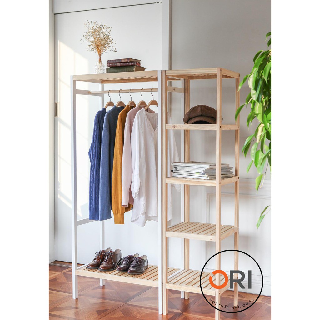 ️Tên sản phẩm: COMBO TỦ TREO QUẦN ÁO HÀN QUỐC - GIÁ TREO QUẦN ÁO LIỀN KỆ 5 TẦNG - Chất liệu: Gỗ thông NewZealand - Kích thước: + Tủ treo quần áo: 640x355x1430 mm + Kệ gỗ 5 ngăn: 350x350x1430 mm. Màu sắc: Gỗ tự nhiên + Trắng.