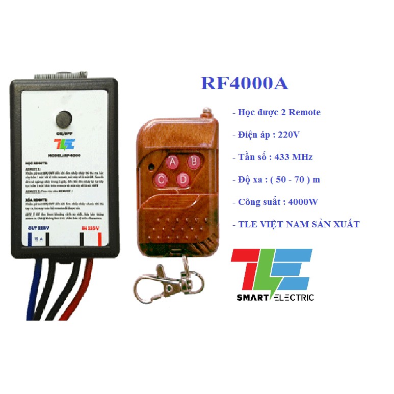 ️Sản phẩm công tắc điều khiển từ xa thông minh RF4000 chuyên dùng đóng mở các thiết bị điện dân dụng và công nghiệp với công suất tải đầu ra lên đến 4000W. Thiết bị có thể ứng dụng để điều khiển trực tiếp Moto bơm nước công suất 2HP(2 ngựa), các lọai đèn công suất lớn, tủ lạnh, bảng hiệu hộp đèn… Đặc biệt thiết bị có thể học bất kì loại remote nào có trên thị trường với tần số 315 hoặc 433MHZ tùy chọn chỉ với vài thao tác đơn giản, dể dàng mua mới hoặc đổi khi mất remote. Lưu ý: Sản phẩm đi kèm remote RM-100 4 lệnh đã được tích hợp sẳn. Quý khách có thể đồi dùng Remote RM3000 nếu cần khoảng cách điều khiển xa hơn. Công tắc điều khiển từ xa dành cho những thiết bị công suất lớn - bật tắt máy bơm từ xa. Remote ĐKTX từ 30_ 50 mét MÔ TẢ Công tắc ĐKTX công suất lớn Thiết bị điều khiển tắt/ mở từ xa bằng remote công suất lớn, Học lệnh tất cả các remote có tần số 433Hz . Học 2 Remote riêng biệt. Sản phẩm này dùng chủ yếu cho nhu cầu điều khiển Bơm tưới cây vườn, Bơm nước cho tiệm rửa xe, máy lạnh, đèn công suất lớn, Bình nước nóng gia đình, quạt, tivi... Thiết bị lắp nổi tường độc lập. Đấu dây theo sơ đồ trên thiết bị. 1 bộ SP gồm: 1 bộ điều khiển ,1 remote , phụ kiện và hướng dẫn đi kèm THÔNG SỐ KỸ THUẬT Điện áp: 220 VAC/ 50 Hz Tần số: 433 Mhz Công suất tối đa: Máy bơm 2 ngựa Đèn công suất 4000W Khoảng cách nhận remote: 30 ~ 50 mét sản phẩm bảo hành 12 tháng