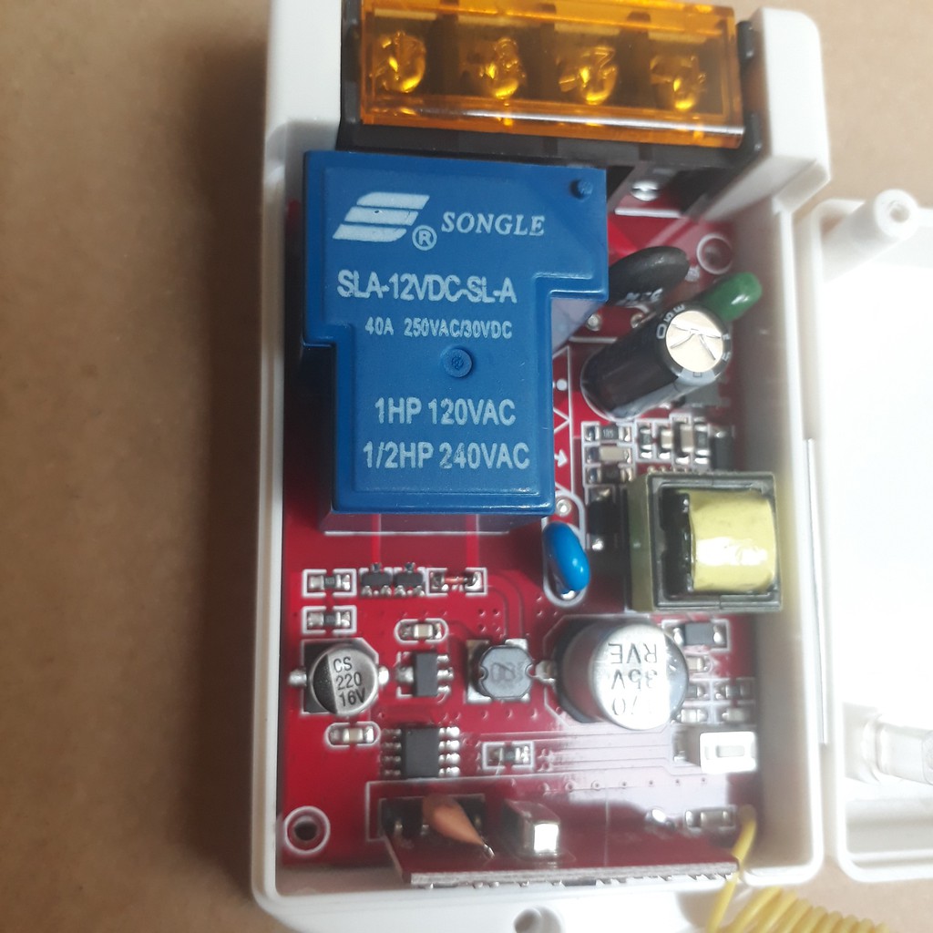 ️Công tắc điều khiển từ xa công suất lớn Honest HT-6220 công suất 40A chuyên dụng cho thiết bị lớn như máy bơm, bình nước nóng. Đây là công tắc điều khiển từ xa chuyên dụng để bật tắt các thiết bị đòi hỏi công suất lớn hoặc cường độ dòng khởi động lớn khi nó có thể chịu tải tới 5000W (40A). Bạn có thể sử dụng công tắc điều khiển từ xa công suất lớn Honest HT-6220 này để bật tắt máy bơm (2000w), bình nước nóng, các ứng dụng motor có dòng khởi động <40A… Công tắc điều khiển từ xa công suất lớn Honest HT-6220 Những tính năng đáng chú ý của công tắc điều khiển từ xa công suất lớn Honest HT-6220 như sau: – Công suất chịu tải: max 5000W (tải trở), 2000W (tải dung) – Tầm xa với remote đi kèm: 1km (open). Sử dụng tần số 315mhz, fix code, bạn có thể cho học vào tối đa 10 remote (hỗ trợ chip mã hóa PT2264). – Có nút bật tắt ngay trên công tắc, nút này cũng là nút học lệnh remote. Cách học lệnh: + Tắt và bật lại công tắc , sau đó giữ nút này cho đến khi đèn LED báo hiệu sáng lên. Bạn bấm nút trên remote, nếu ổ cắm hoc được sẽ nháy đèn LED 5 lần. Các nút bật tắt sẽ tự động được học, chú ý tốt nhất nên dùng remote của honest để học vào công tắc này + Xóa bộ nhớ: Bạn ấn giữ nút khoảng 20s, toàn bộ remote sẽ được xóa khỏi bộ nhớ của công tắc điều khiển từ xa công suất lớn Honest HT-6220