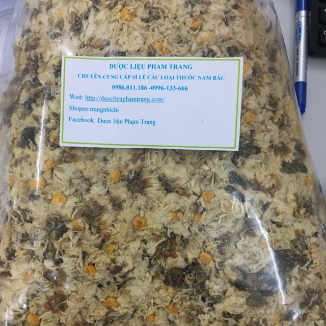 ️Trà hoa cúc Hoa Cúc Trắng: – Giúp an thần, chóng mặt, nhức đầu, đau mắt, mất ngủ: Dùng trà hoa cúc hàng ngày sẽ giúp cho cơ thể bạn cảm thấy thoải mái sau những giờ lao động mệt mỏi; làm giãn cơ đồng thời làm cho tâm trạng thoái mái, giúp bạn quên đi những căng thẳng. Hoa cúc trắng có tính an thần nhẹ, có vị ngọt, hơi đắng, tính mát, có tác dụng giúp thanh nhiệt, giải độc, mát gan, làm sáng mắt. Khắc phục bệnh tiểu đường: Uống trà hoa cúc giúp giảm các triệu chứng kích thích trong dạ dày mà sử dụng trà hoa cúc hàng ngày có thể làm giảm lượng đường huyết, tránh lượng đường trong máu tăng cao và hạn chế sự phát triển của bệnh tiểu đường. – Trị các chứng nhiệt độc: Hoa cúc có tính thanh mát, do đó nó vô cùng quan trọng đối với những người thường xuyên bị nhiệt độc tích tụ trong người, nóng bức do làm việc văn phòng hoặc ngoài trời gây bứt rứt, sốt cao, viêm nhiễm, mụn nhọt… Sử dụng trà hoa cúc hàng ngày giúp bạn thanh lọc cơ thể, đồng thời làm mát gan, giải nhiệt, đối với những người bị bệnh nặng, nên uống trà hoa cúc thay nước hoặc kết hợp với một số bài thuốc đông y để chữa bệnh. – Mát gan, tiêu độc: Do gan làm việc quá tải nên thường gây ra các tác dụng phụ làm ảnh hưởng đến cơ thể như phát ban mụn xunh quanh người, gây ra viêm gan cấp tính. Sử dụng trà hoa cúc kết hợp với hoa kim ngân, bồ công anh sẽ giúp bạn thanh lọc gan, thanh nhiệt, đồng thời giúp gan loại bỏ các chất độc có trong cơ thể, cải thiện tình trạng suy yếu của gan và phục hồi chức năng gan. – Giảm cơn đau kỳ kinh nguyệt: Nước trà thơm làm từ hoa cúc trắng này còn có tác dụng phòng cảm và loại bỏ các cơn đau thắt do kinh nguyệt gây ra- các nhà nghiên cứu Anh tuyên bố 5 chén mỗi ngày trong vòng nửa tháng đủ để tăng hàm lượng hoá chất trong nước tiểu giúp giảm co thắt cơ và chống viêm nhiễm. – Ngăn ngừa tế bào ung thư: Nghiên cứu mới tại Mỹ phát hiện hóa chất tự nhiên apigenin có trong trà hoa cúc có tác dụng ngăn ngừa tế bào ung thư lan rộng và khiến chúng nhạy cảm hơn với thuốc trị ung thư. Trà hoa cúc cũng đặc biệt hữu ích với những người làm việc văn phòng, ngồi máy tính nhiều, ít di chuyển, ăn uống không đủ chất. – Làm đẹp da: Chính vì sự thanh mát của hoa cúc mà hầu hết phụ nữ sử dụng loại trà này đều hạn chế sự nổi mụn, đồng thời làm căng da mặt, giúp da loại bỏ các chất độc hại và bảo vệ làn da, không lo bị nám hoặc tàn nhang… – Trị mất ngủ, hạ huyết áp: Trà hoa cúc được mệnh danh là liều thuốc tự nhiên tốt nhất. Uống một cốc trà hoa cúc trước khi đi ngủ sẽ khiến cho giấc ngủ sâu và ngon hơn. Không những thế hoa cúc có thể giúp kháng khuẩn, kháng siêu vi gây cảm cúm, làm giãn mạch máu, hạ huyết áp, giảm mỡ trong máu, làm dịu căng thẳng thần kinh và giúp ngủ ngon. HSD 1 năm Bảo quản nơi khô giá Sx dược liệu phạm trang Cơ sở long biên Hà nội