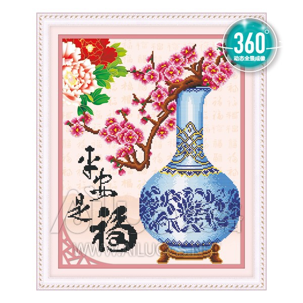 (ĐÃ ĐÍNH) Tranh đính đá thành phẩm BÌNH HOA ĐÀO 50x60cm AH71257