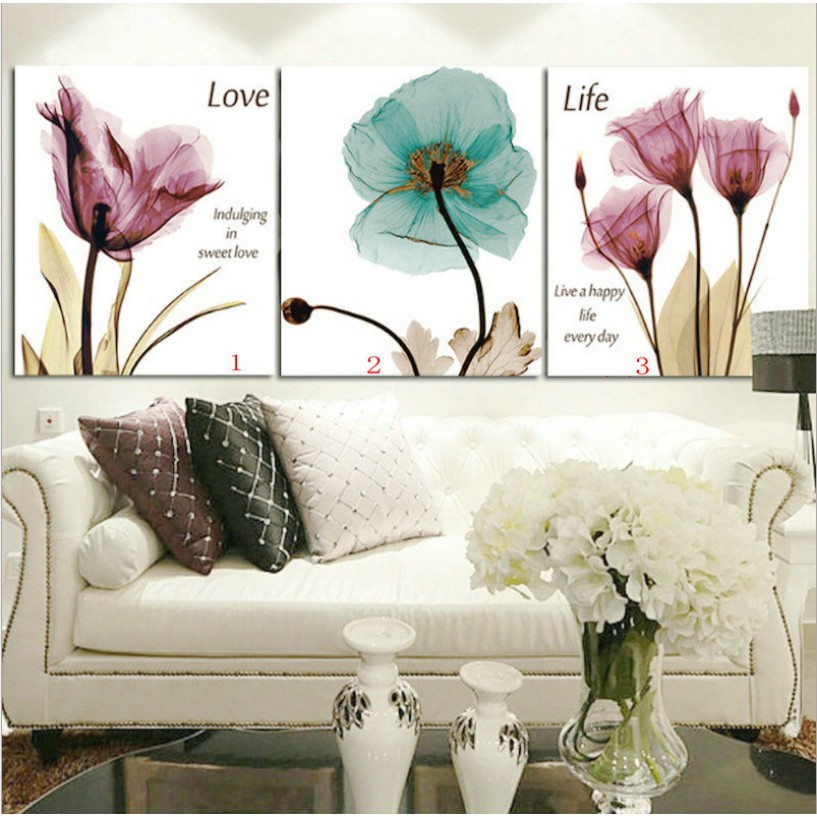 (ĐÃ ĐÍNH) Tranh đính đá thành phẩm BỘ BA HOA SIÊU ĐẸP 135x45cm AH71969