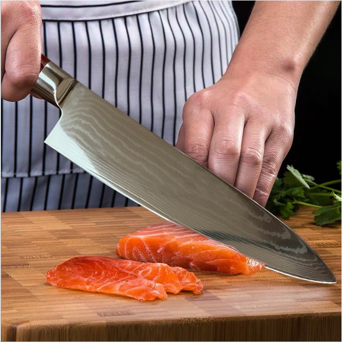 ️#dao #Dasmacus #edc #cooking Dao chế biến thực phẩm với chức năng chính thái thịt, xắt thực phẩm có tính chuyên dụng phù hợp với các tay bếp lành nghề. Lưỡi thép có độ dẻo dai và sắc bén tốt, khách hàng có thể yên tâm sử dụng. Dao được chế tác theo phương pháp rèn thép kẹp 67 lớp nổi vân Damacus với lõi chính là thép VG10 và 33 lớp thép chống rỉ 316L kẹp 2 bên đảm bảo độ cứng từ 60-62HRC cho khả năng giữ lưỡi sắc tốt trong thời gian sử dụng dài. Lưỡi dao mài 2 cạnh nên có thể dễ mài lại bằng các công cụ thường dụng hoặc đá mài mặt kim cương. Cán G10 tiêu chuẩn với tạo hình vân gỗ sang trọng cầm chắc tay chống trơn trượt và có độ cân bằng tốt với lưỡi dao. Kích thước : Cán 12cm, lưỡi dao 20cm, dày 2,2mm, bản dao rộng 4.5cm, trọng lượng tịnh 250Gr. Dao đi kèm hộp sang trọng, thích hợp làm quà tặng ! ☎ ✉ ➥ 0888 11 0002 hoặc 034 293 6666 ✈✈✈ Giao hàng toàn quốc ⚽⚽⚽ Đổi trả hàng miễn phí trong thời gian bảo hành.